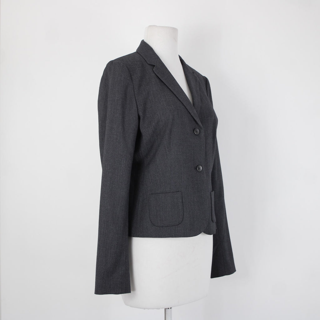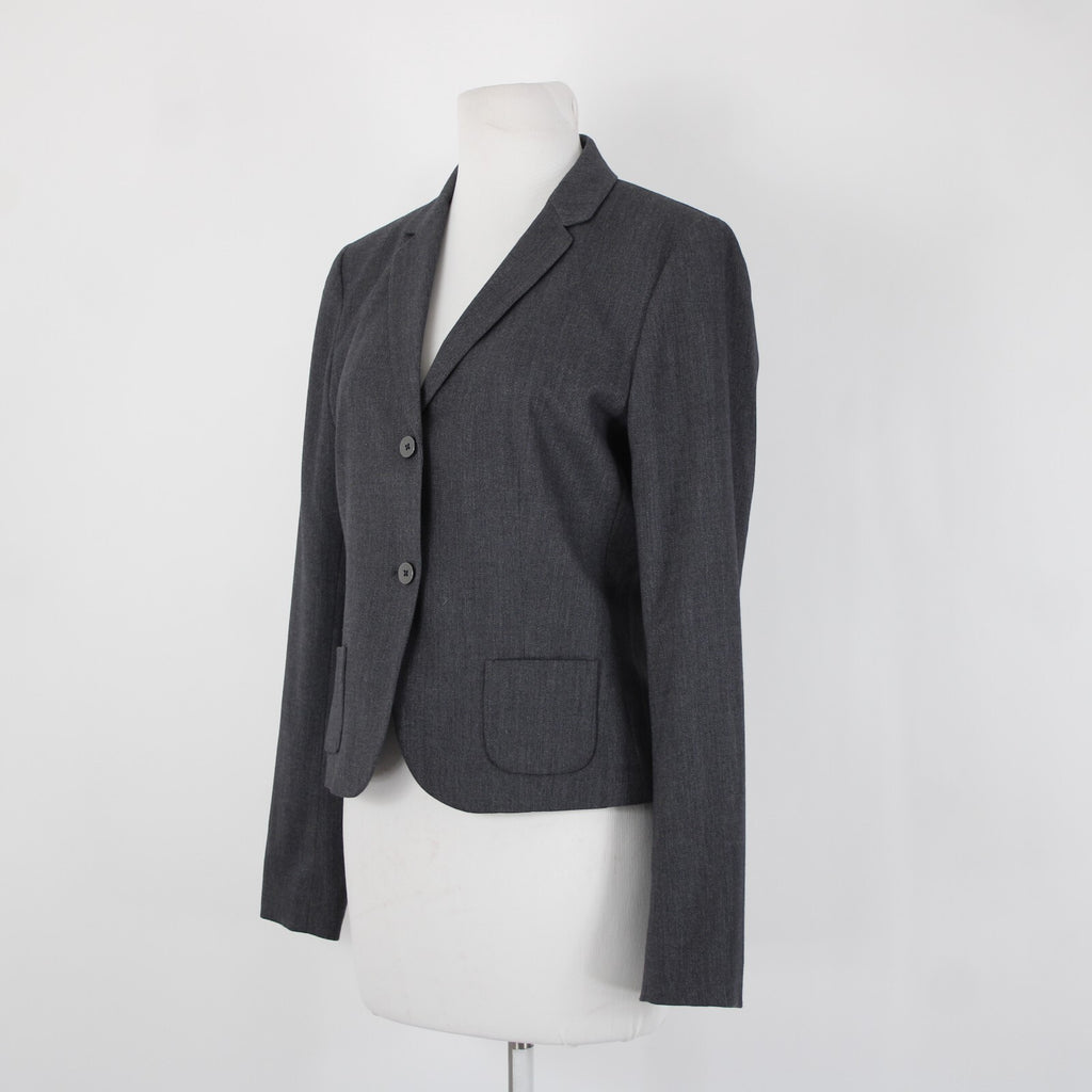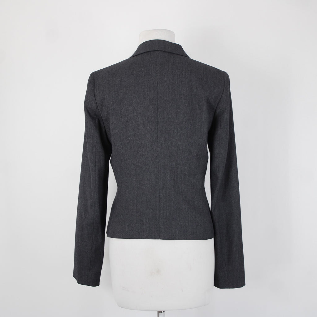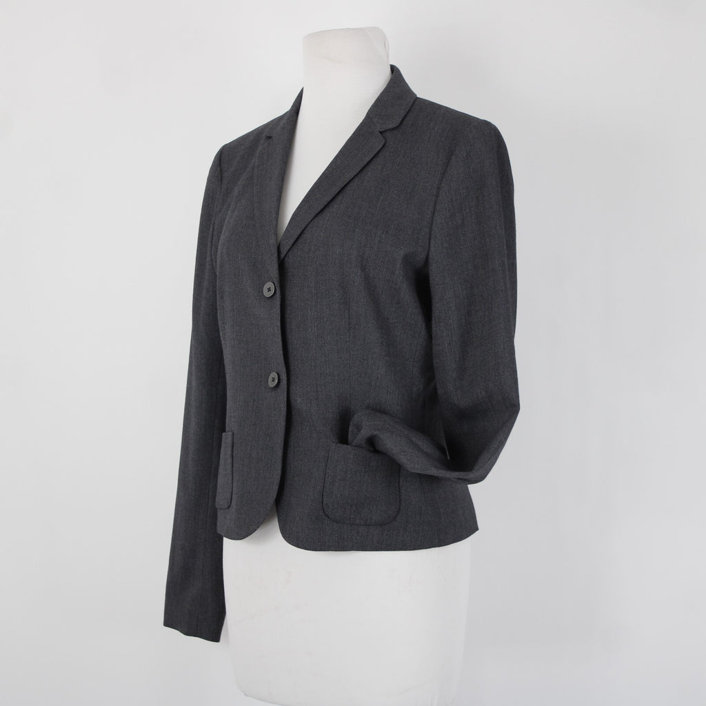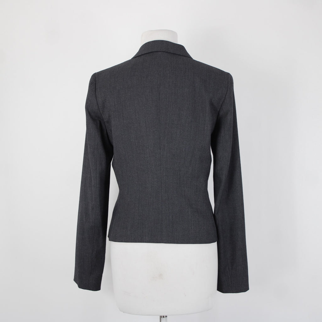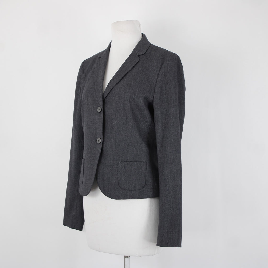 Tahari Sz 8 Gray Fine Herringbone Patch Pockets Polyester Lined Blazer Jacket