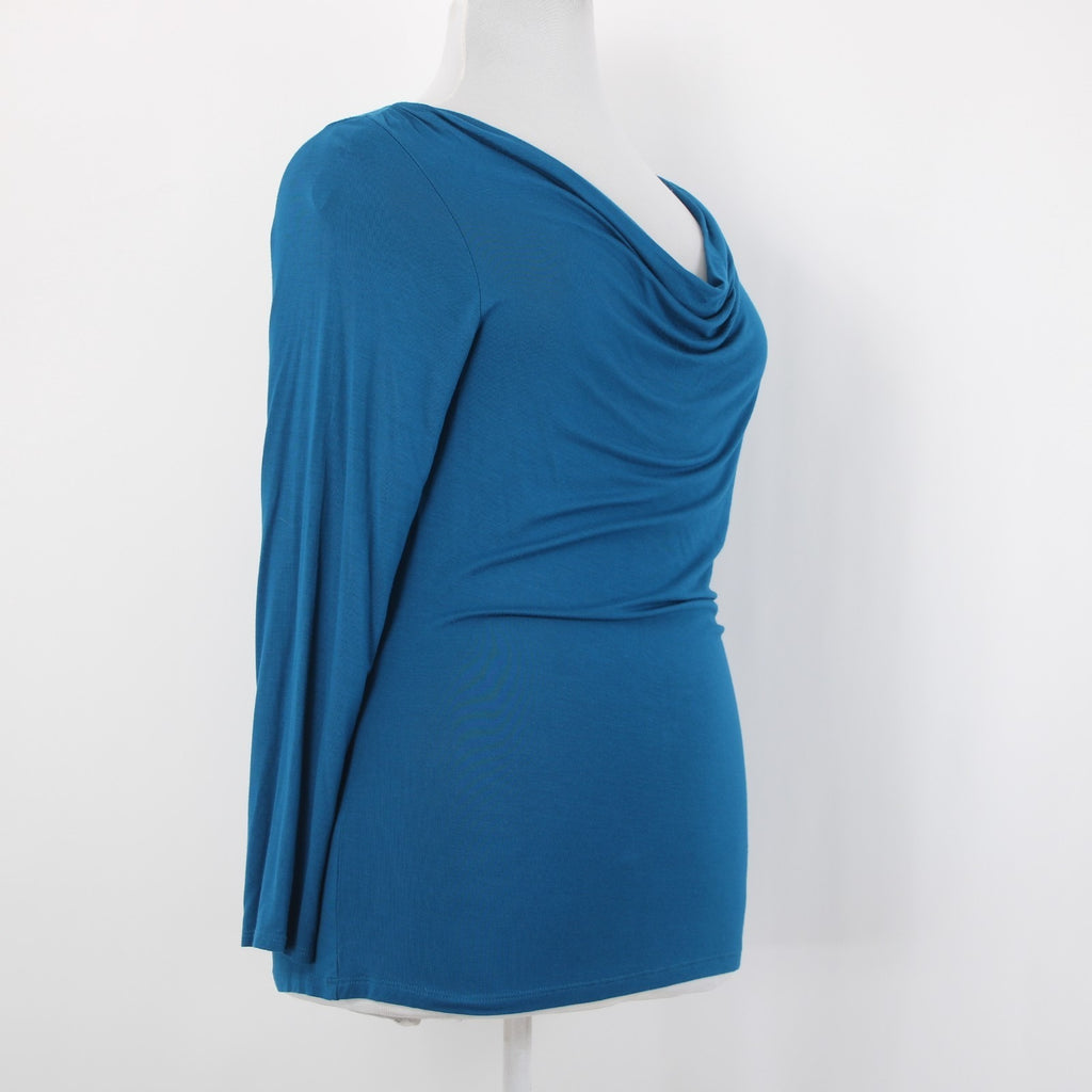 Tahari Top NEW $88 Sz XL Aquarium Blue Cali Knits Cowl Neck Rayon Elastane Top