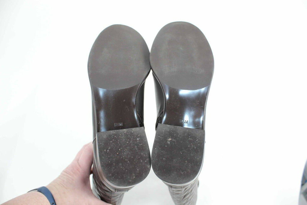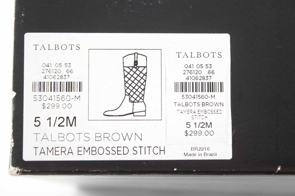Talbots $299 Sz 5.5M Brown Tamera Embossed Stitch Zip Below Knee Boots