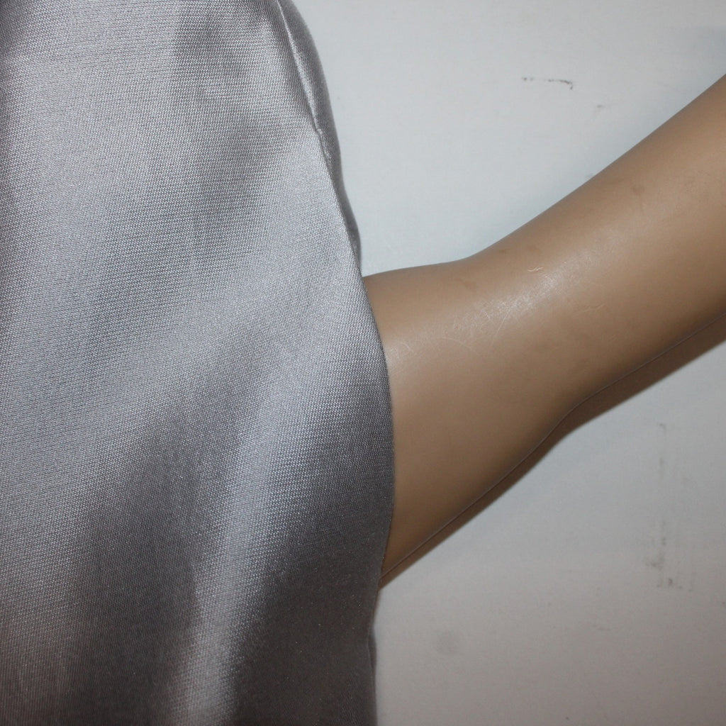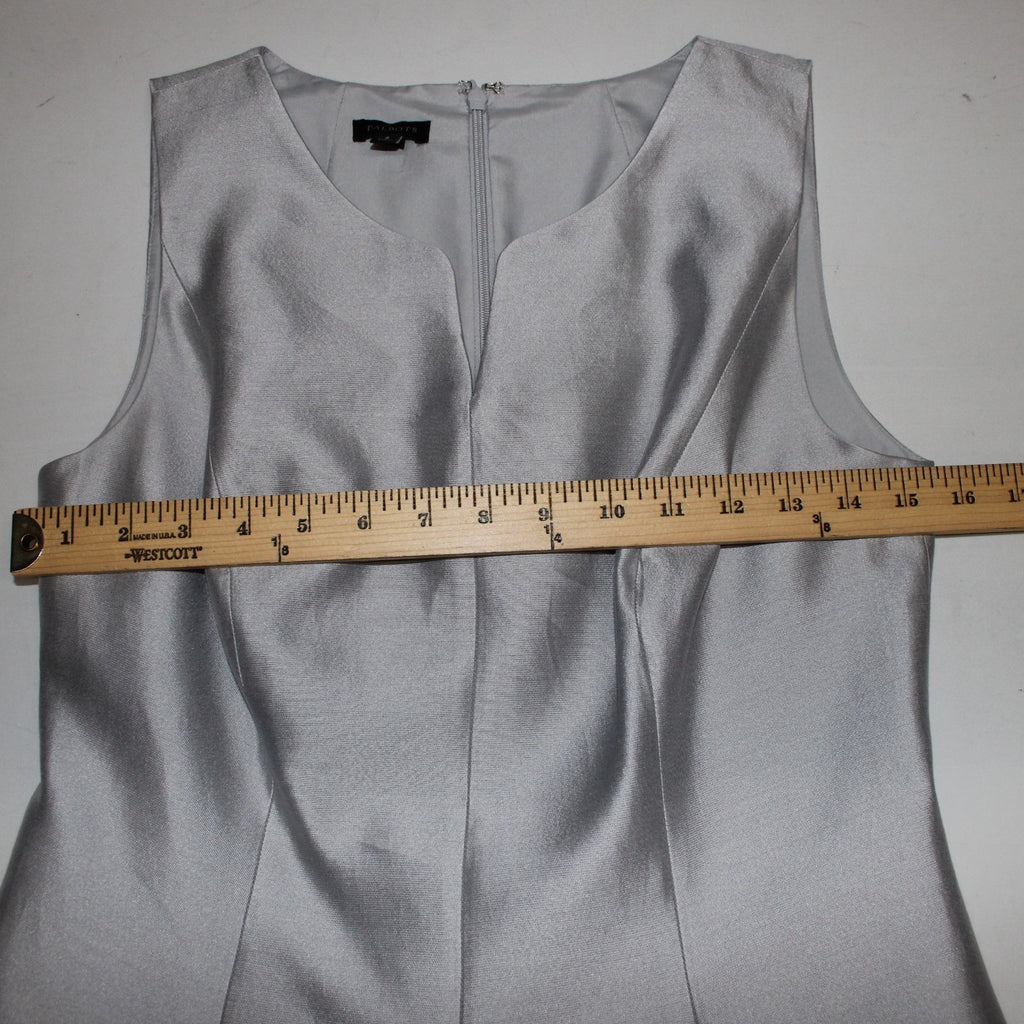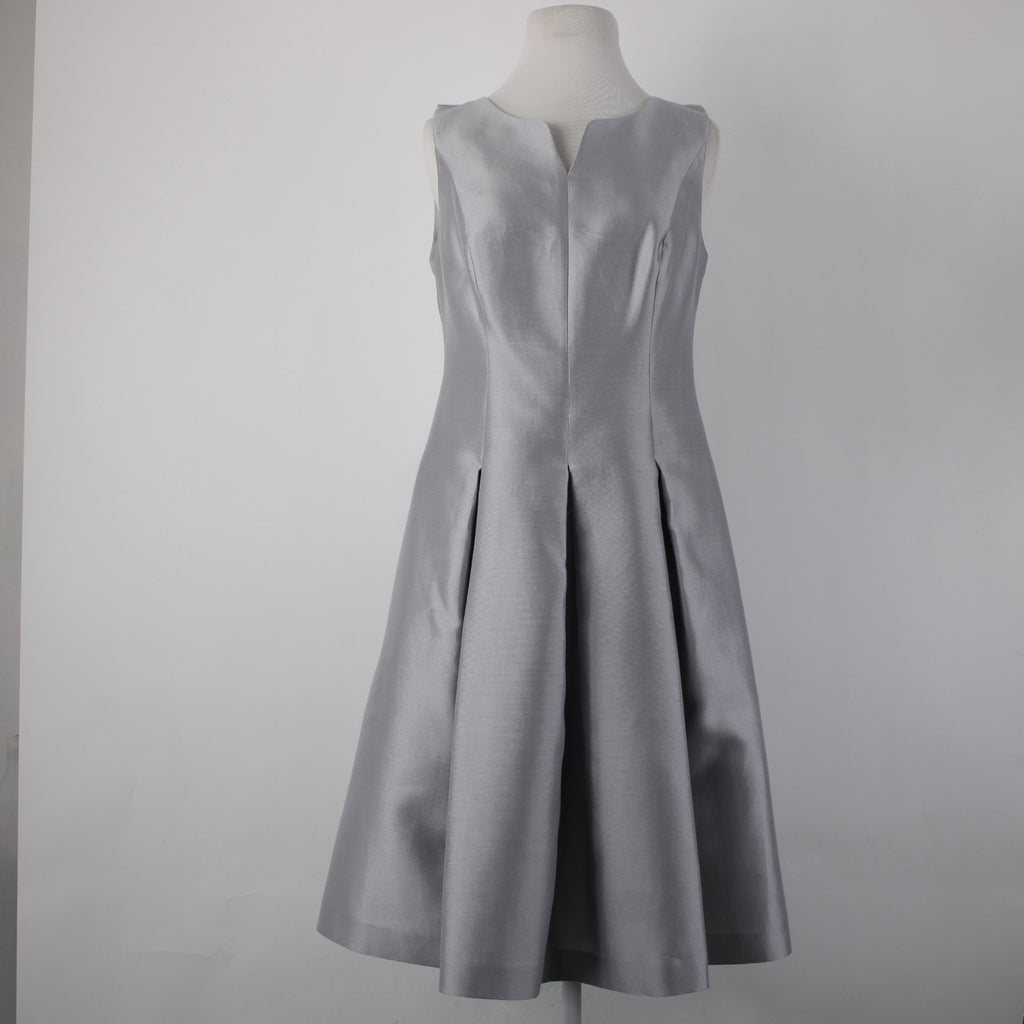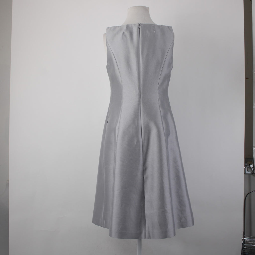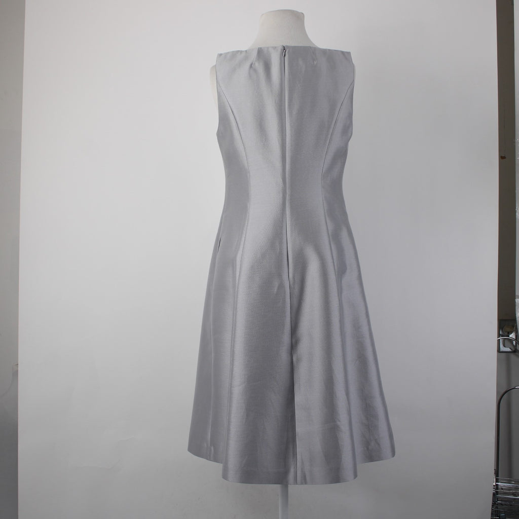 Talbots Dress Sz 2 Silver V Neck Pockets Lined Pleated Silk Cotton Poly Dress