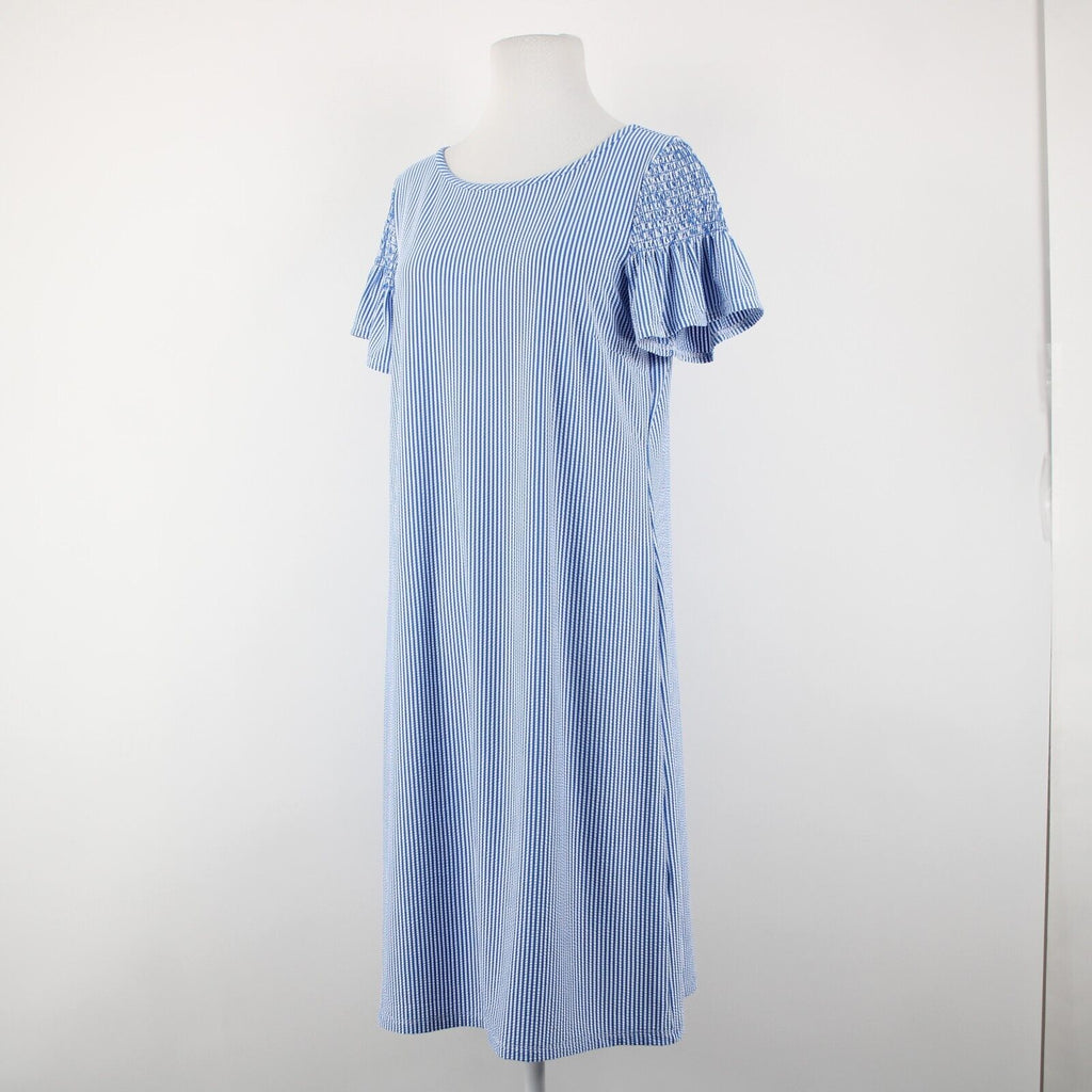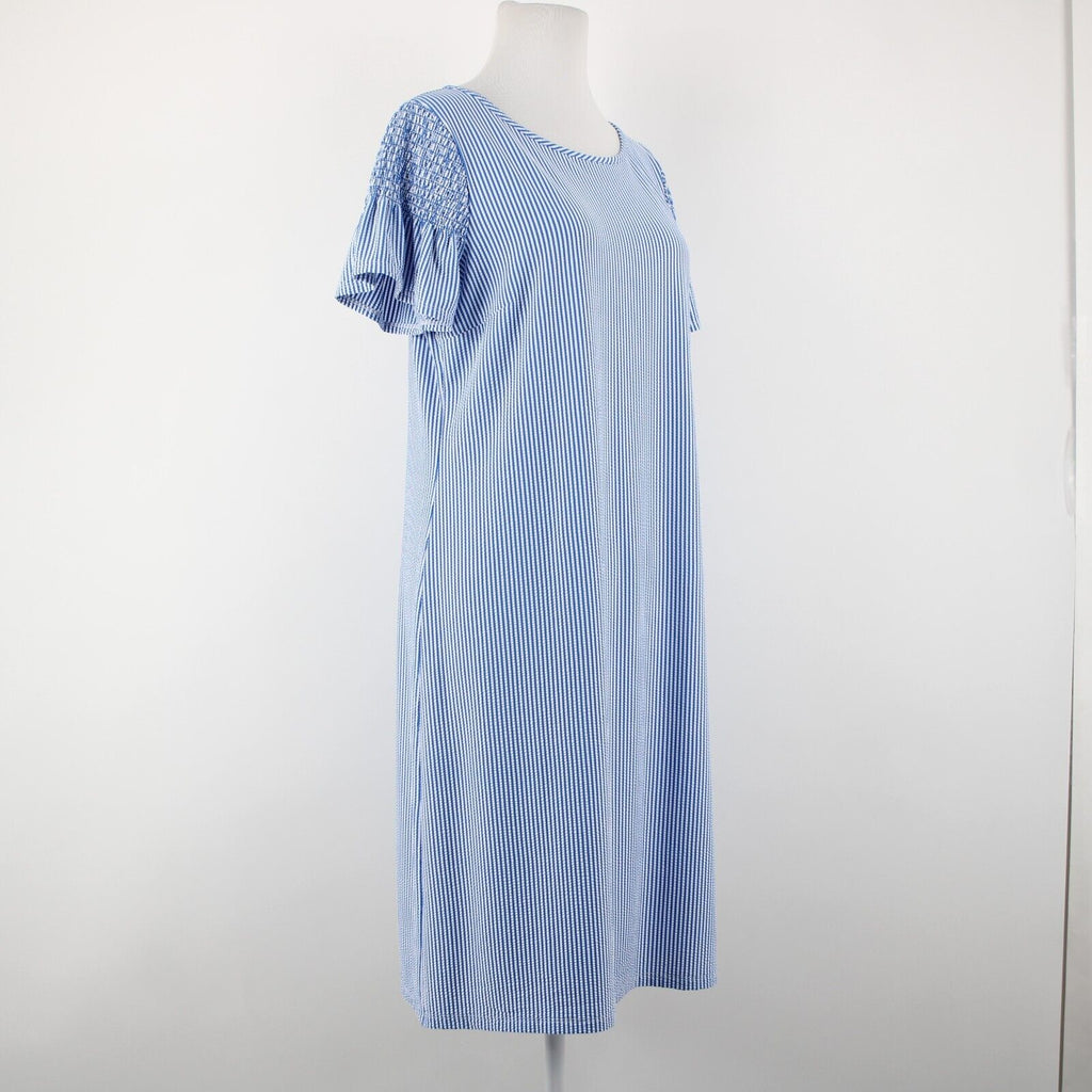 Talbots NEW $119 Sz M Royal Blue White Striped Textured Polyester Nylon Dress