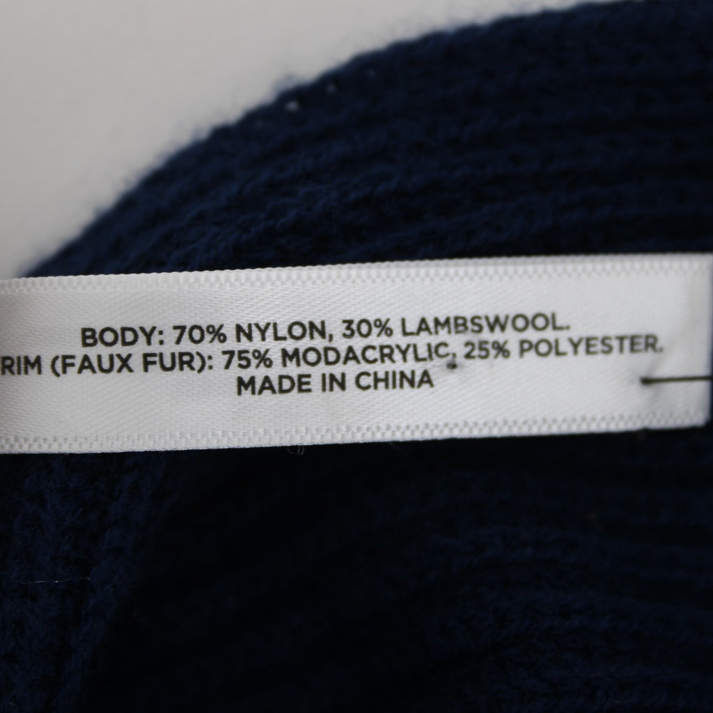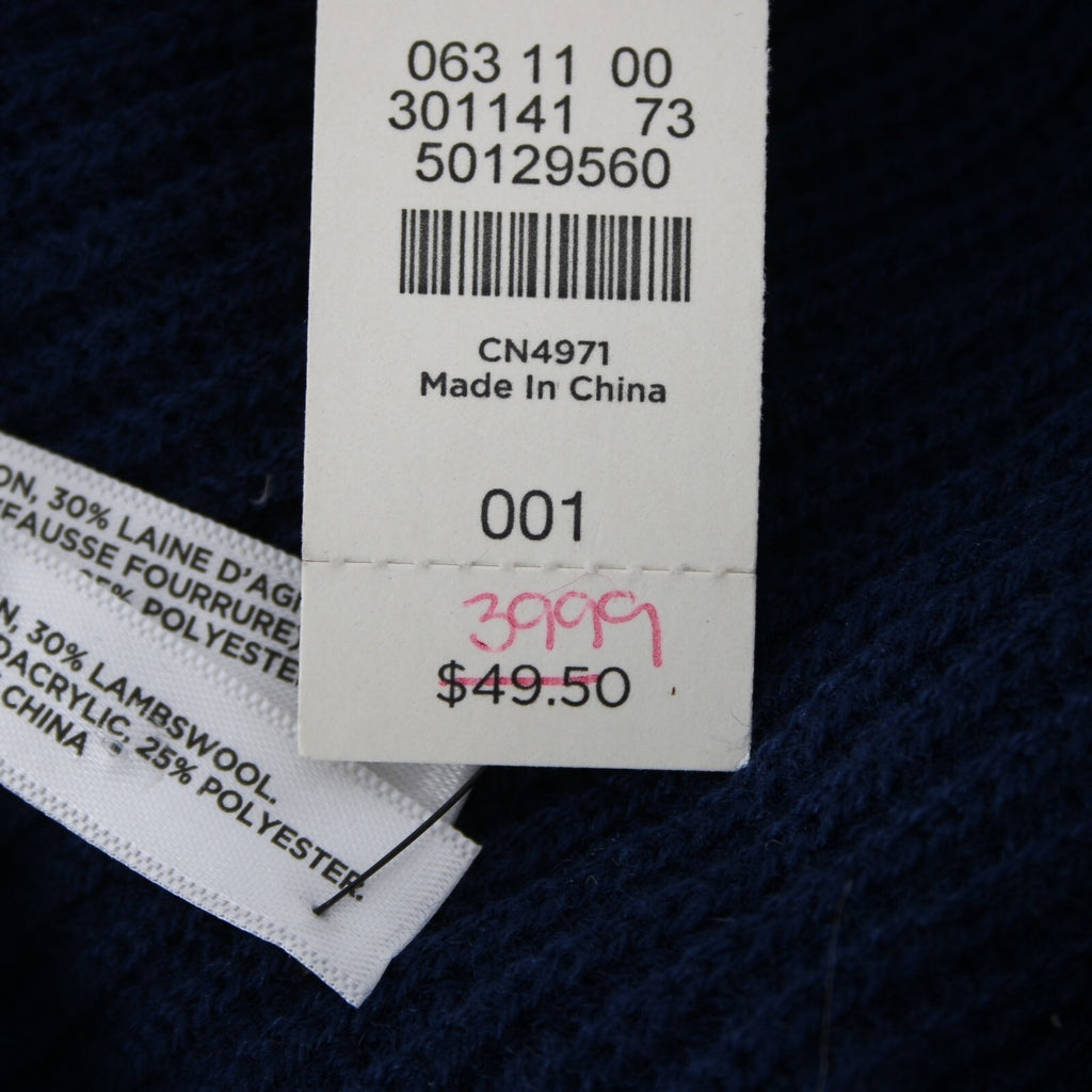 Talbots NEW $40 Navy Blue Faux Fur Trim 83" x 9.75" Nylon Lambswool Scarf