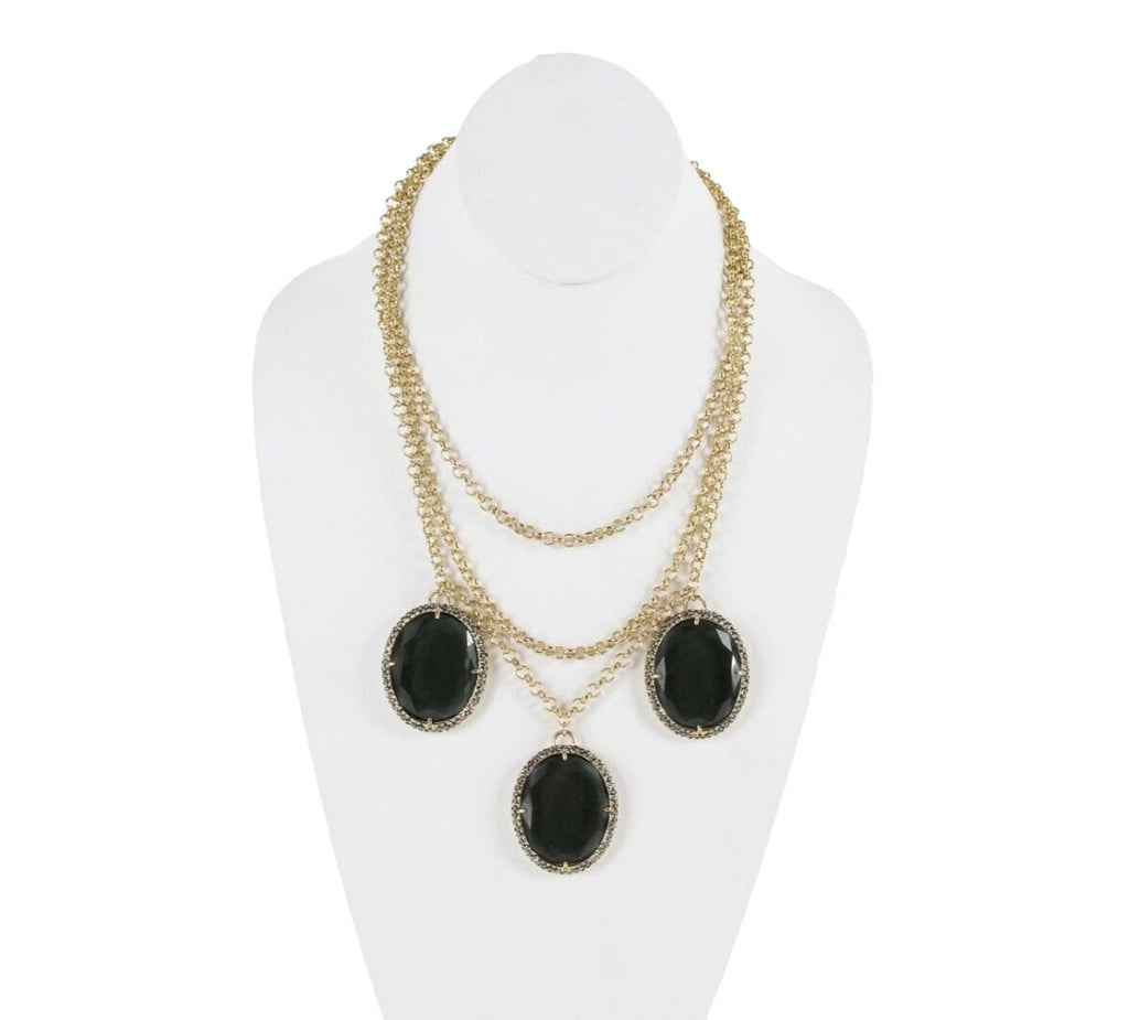 Talbots NEW $50 19in Goldtone 3 Strand Chain Faceted Smokey Stones Necklace
