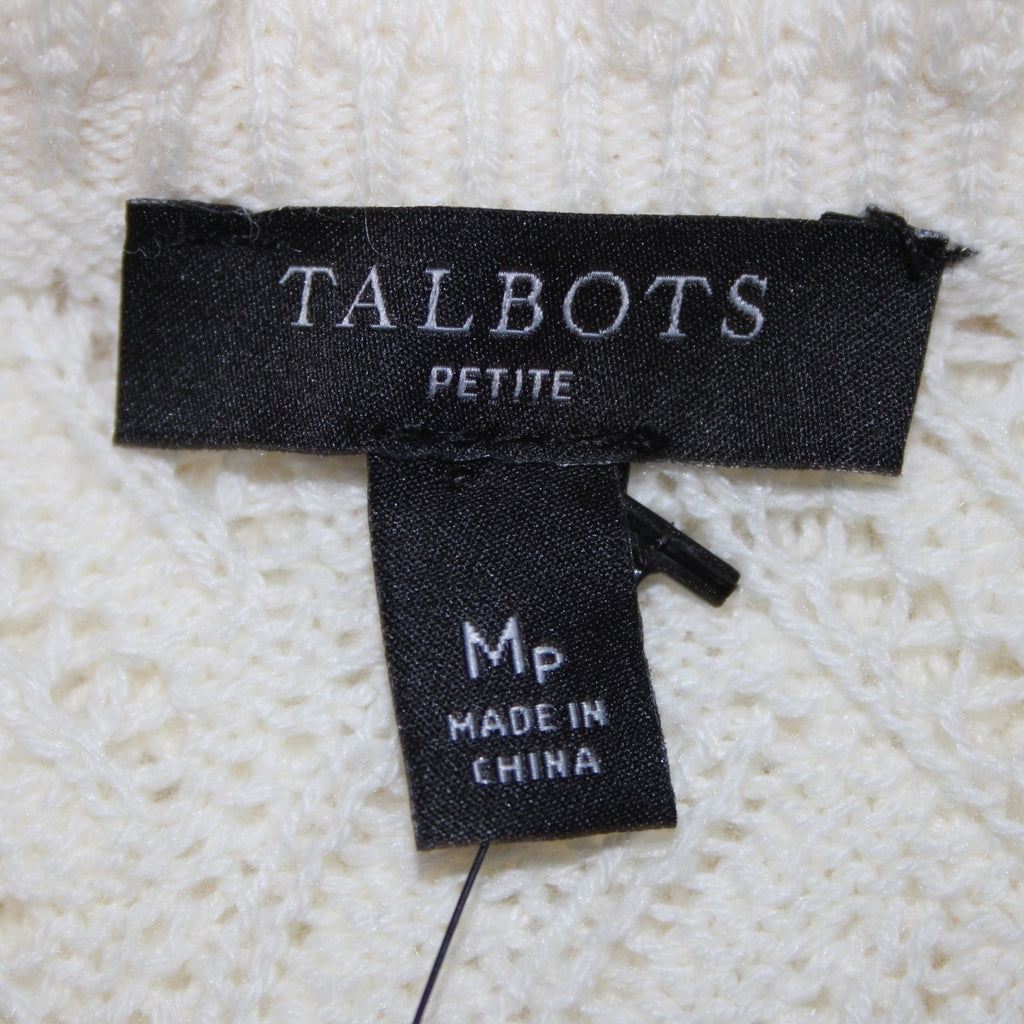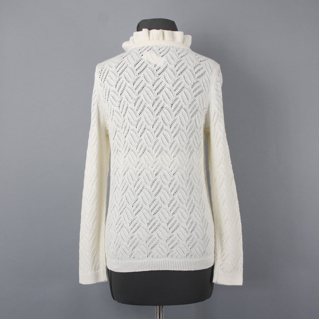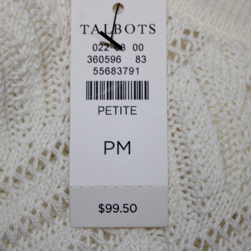 Talbots NEW $99 Sz M Petite Ivory Open Weave Ruffle Neck Cotton Blend Sweater