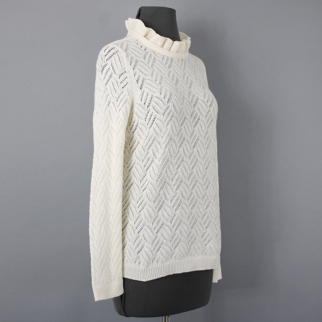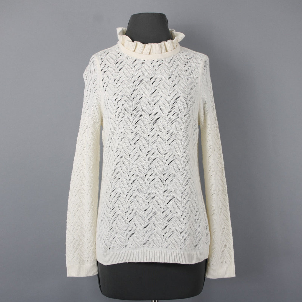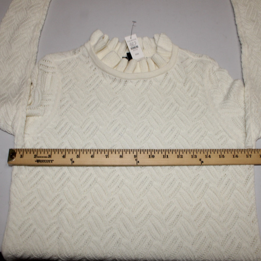 Talbots NEW $99 Sz M Petite Ivory Open Weave Ruffle Neck Cotton Blend Sweater