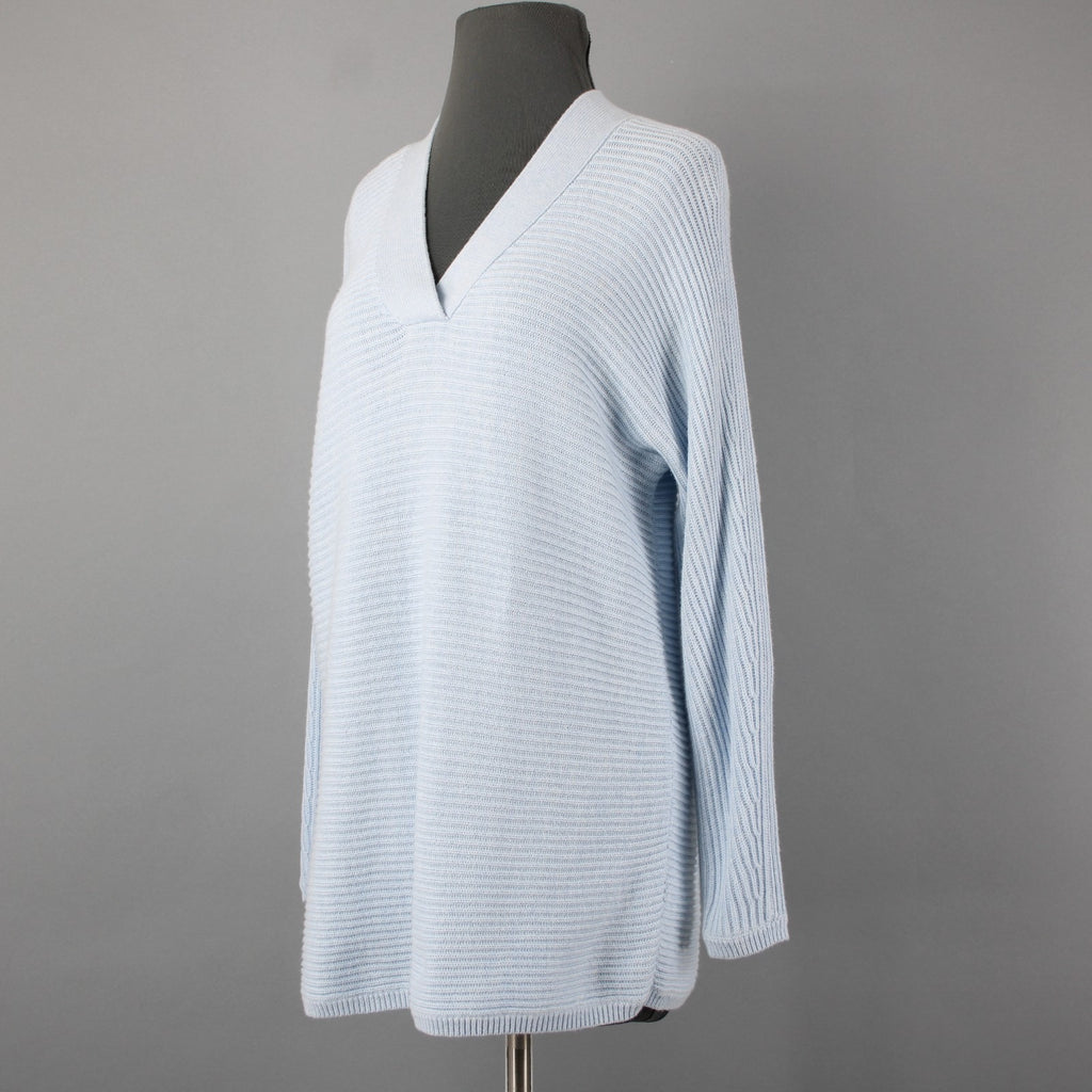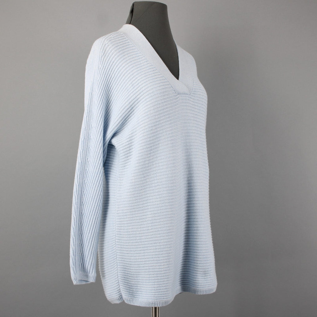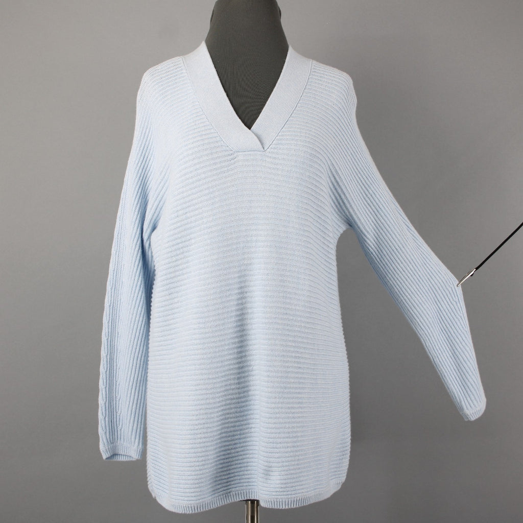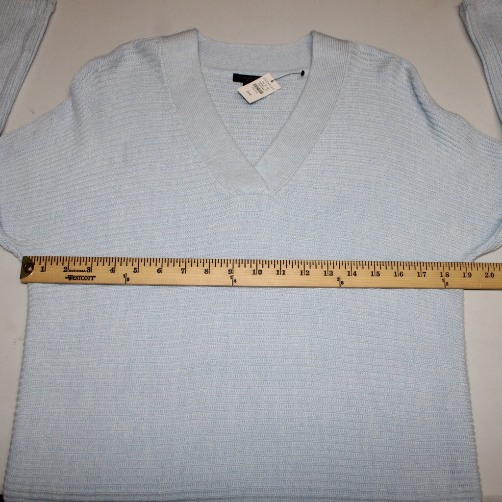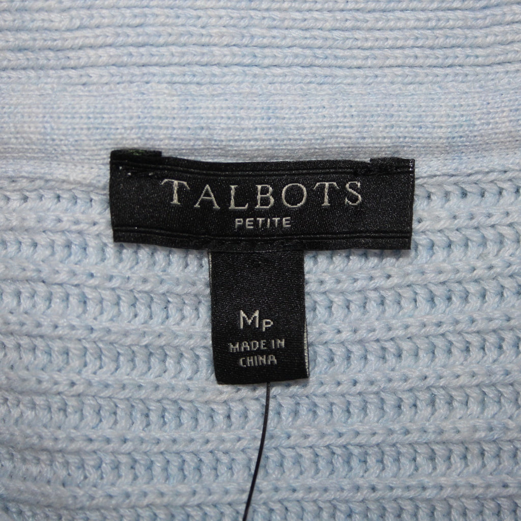 Talbots NEW Sz Mp Lt Blue Textured Knit V Neck Cotton Multi Blend Tunic Sweater