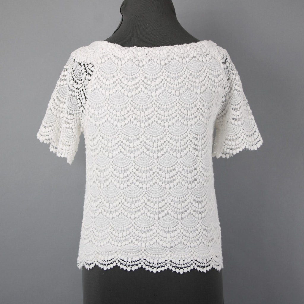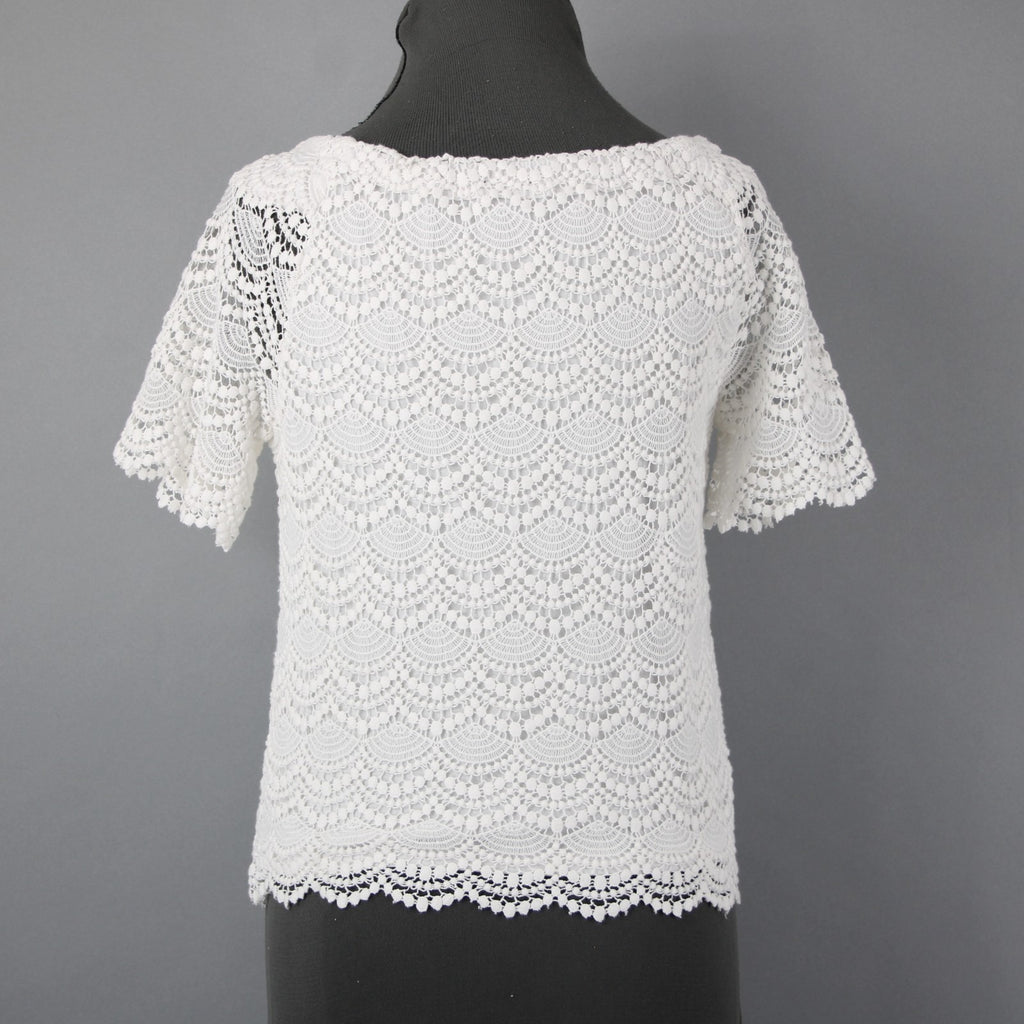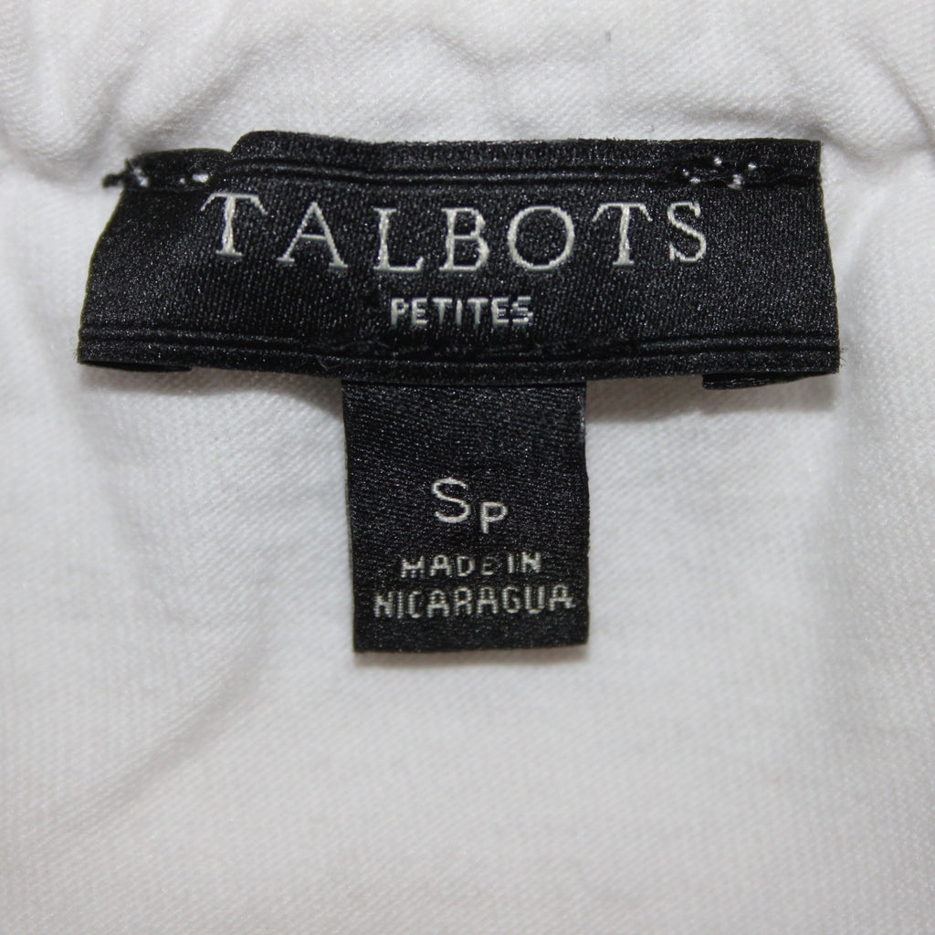 Talbots Petites Sz Sp White Scallop Lace Sheer Sleeve Cotton Blend Lined Top