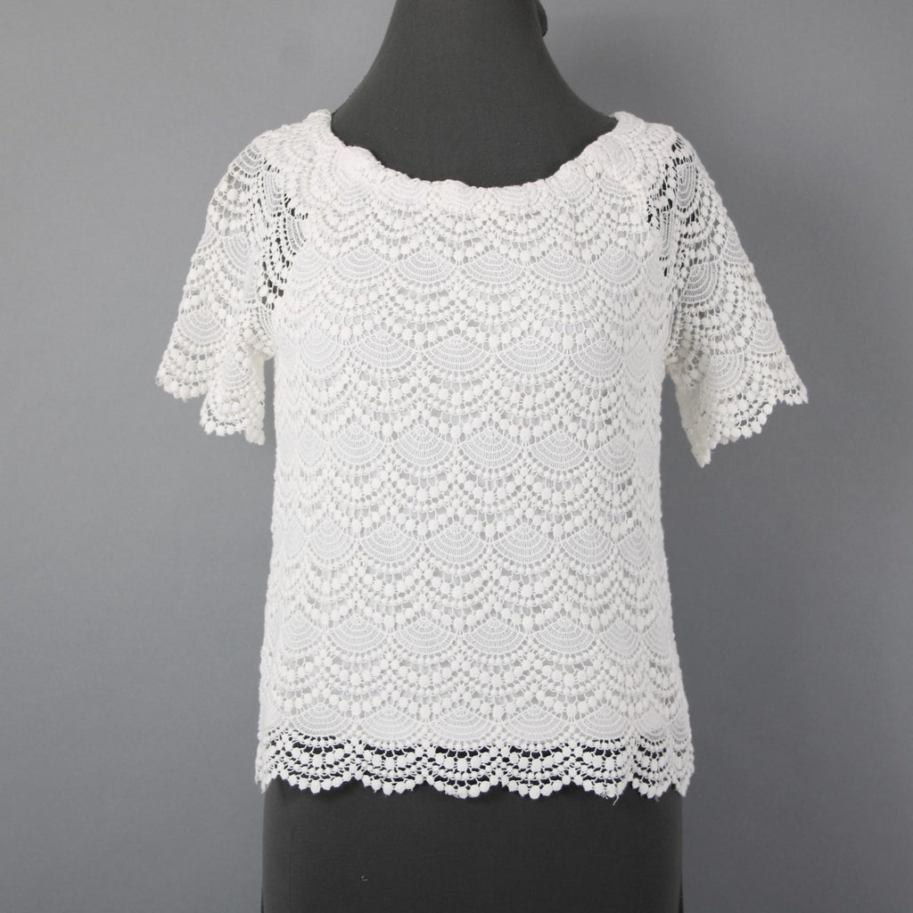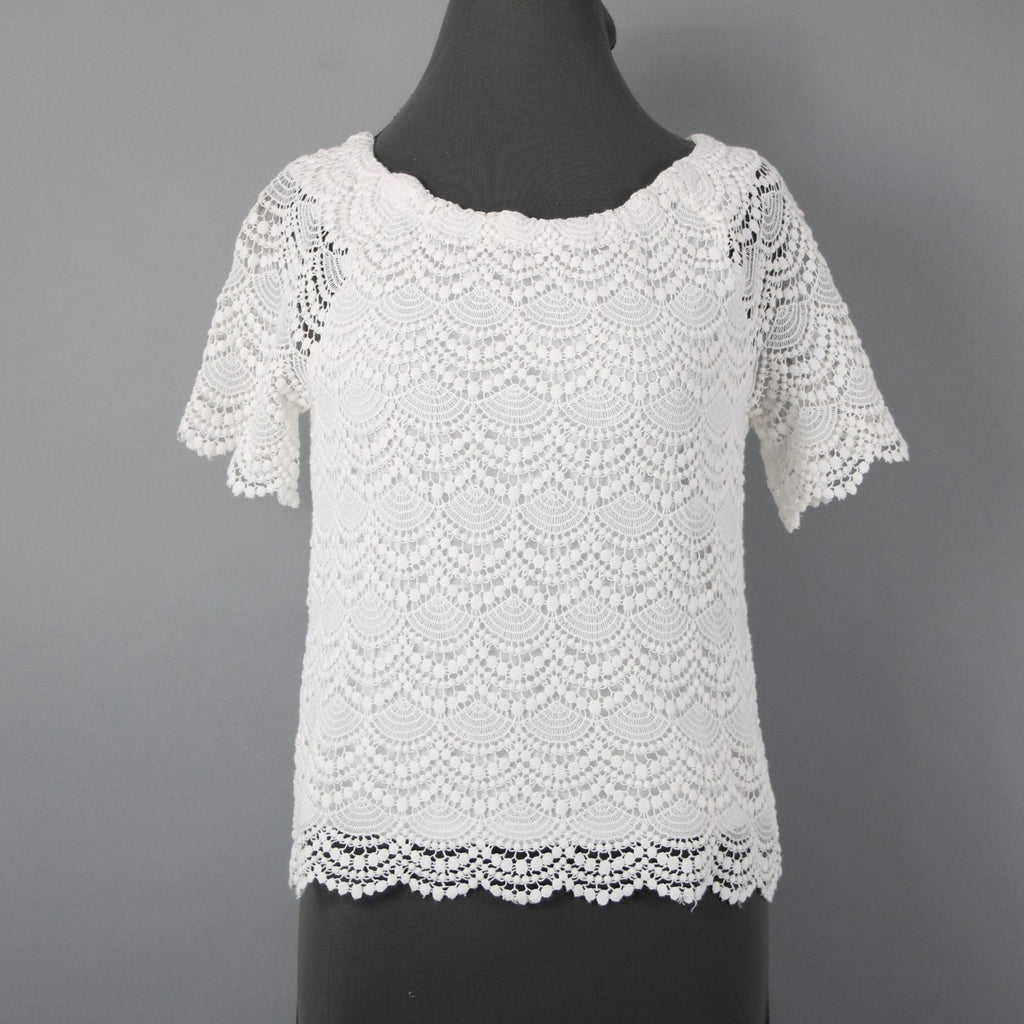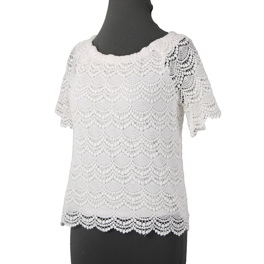 Talbots Petites Sz Sp White Scallop Lace Sheer Sleeve Cotton Blend Lined Top