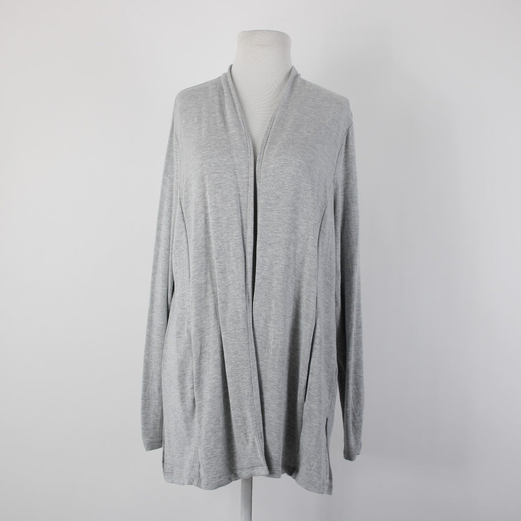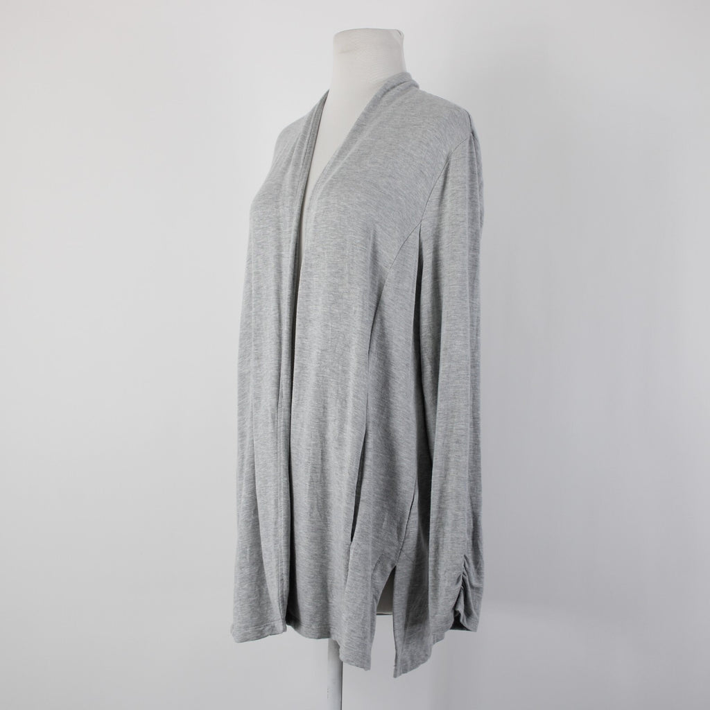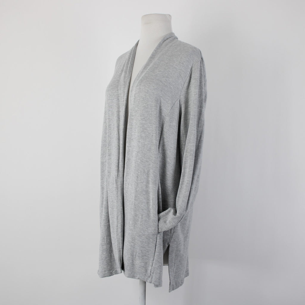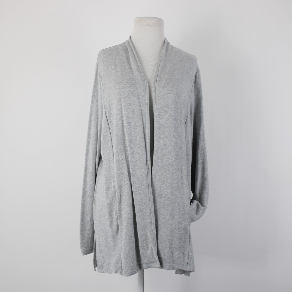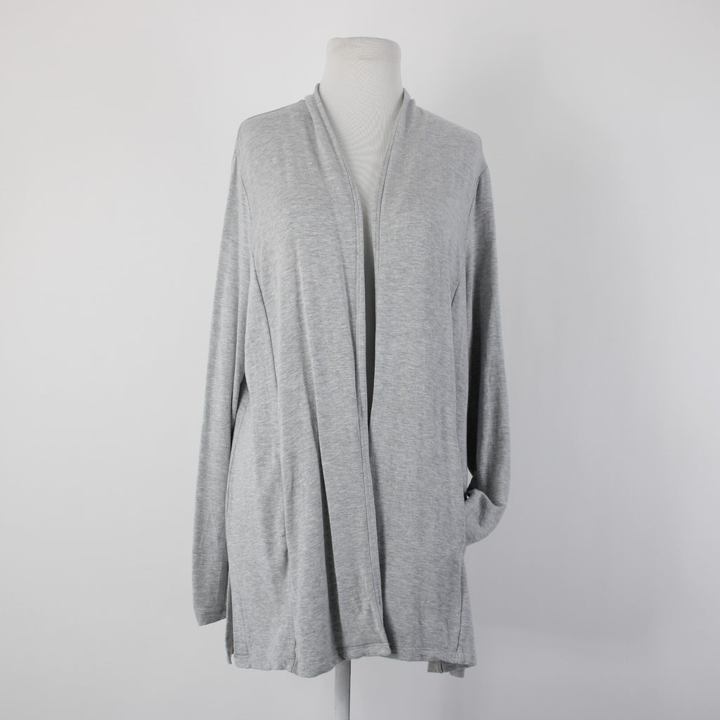 Talbots Sz L Gray Draped Collar Pockets Unlined Modal Spandex Wrap Sweater
