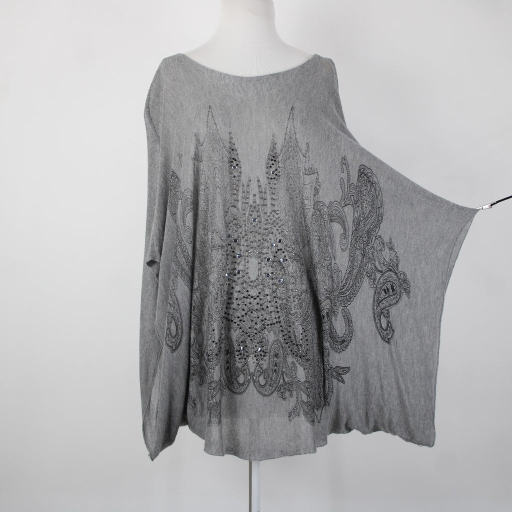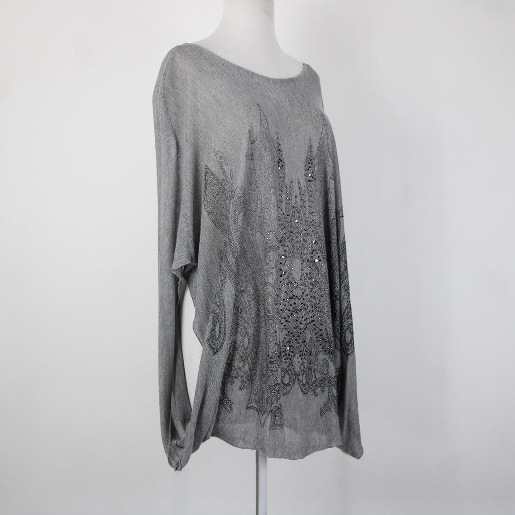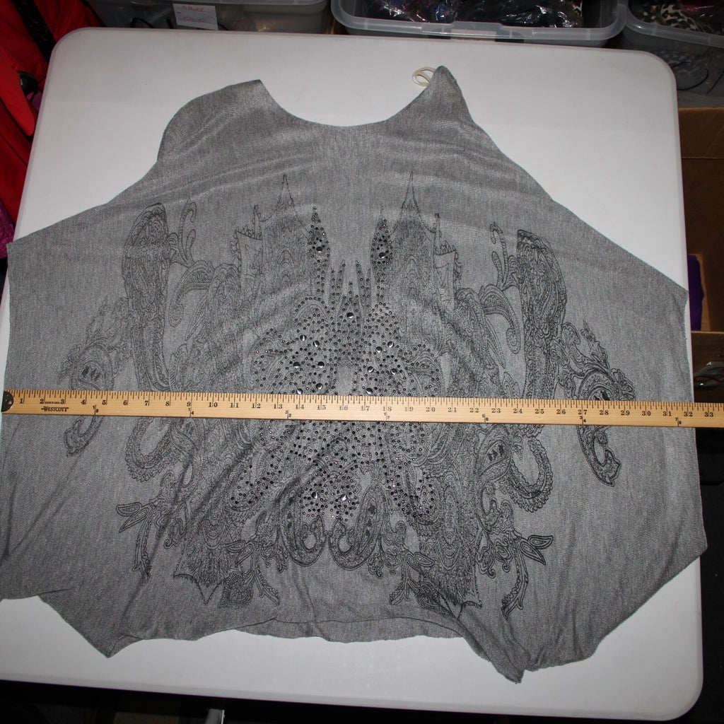 Tempo Paris Sz S/M Gray Black Studded Sheer Bohemian Oversized 100% Viscose Top