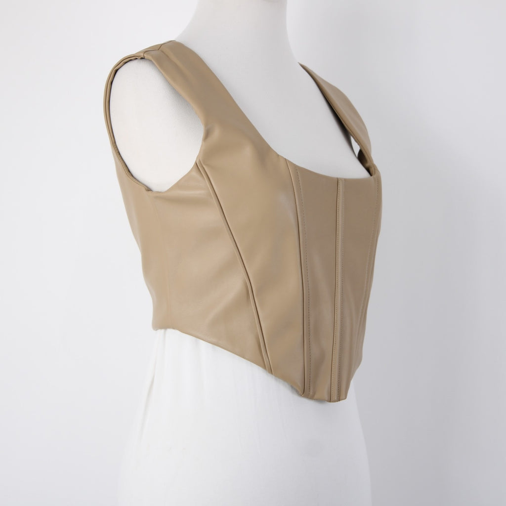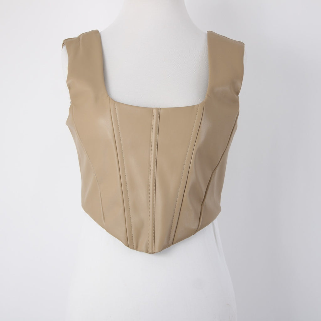 The Closet Top NEW $68 Camel Tan Crop Faux Leather Alginate Rayon Top