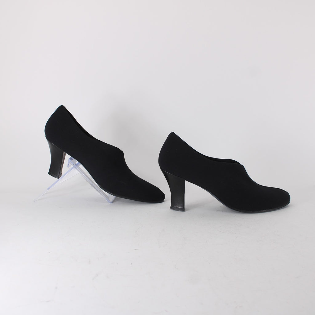 Thierry Rabotin Heels Flair Sz 38 Black Slip On Micro Fiber Leather 2" Heels