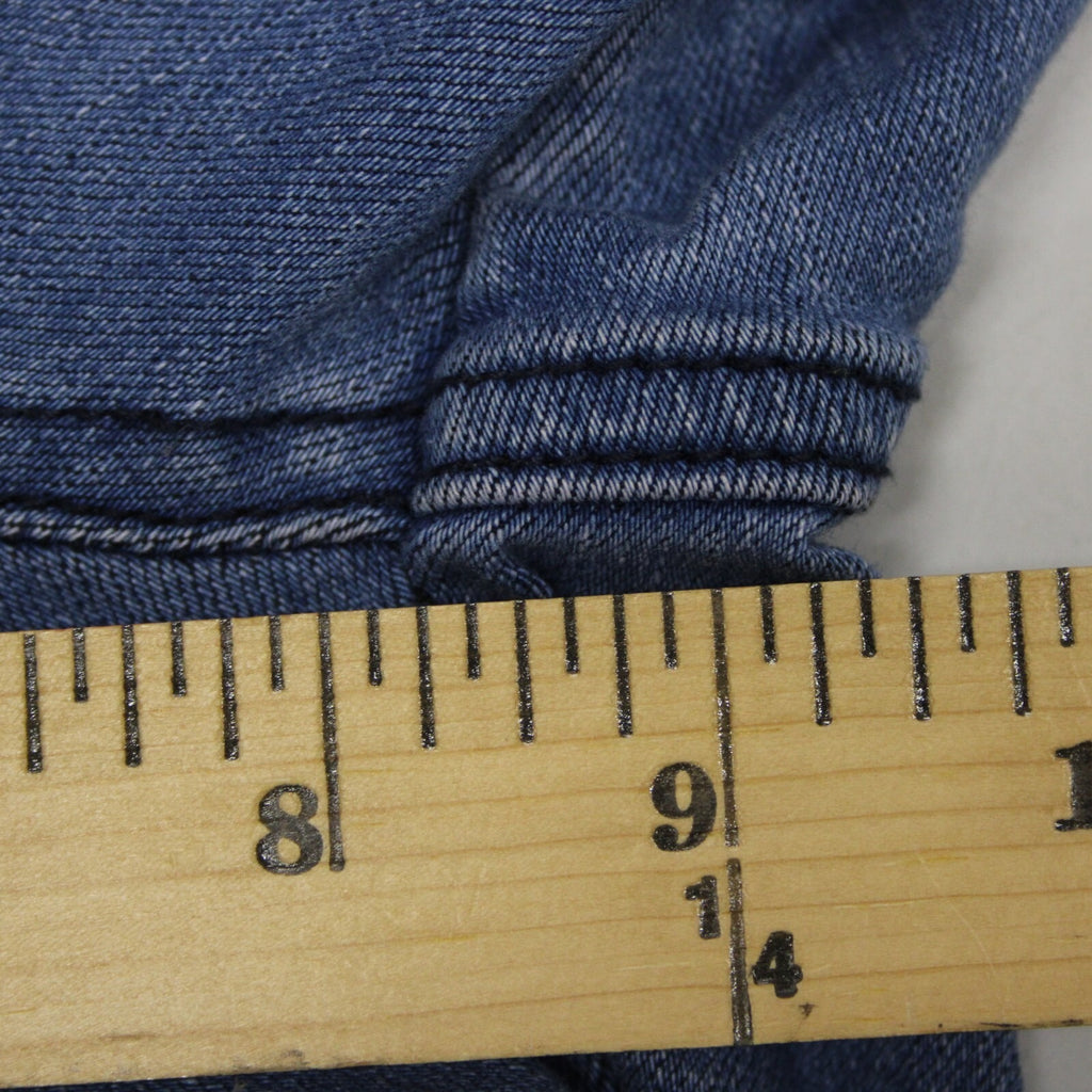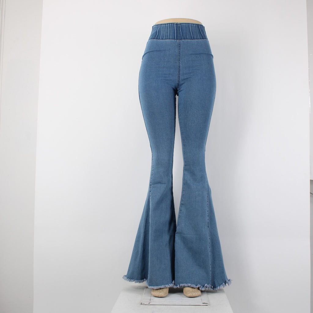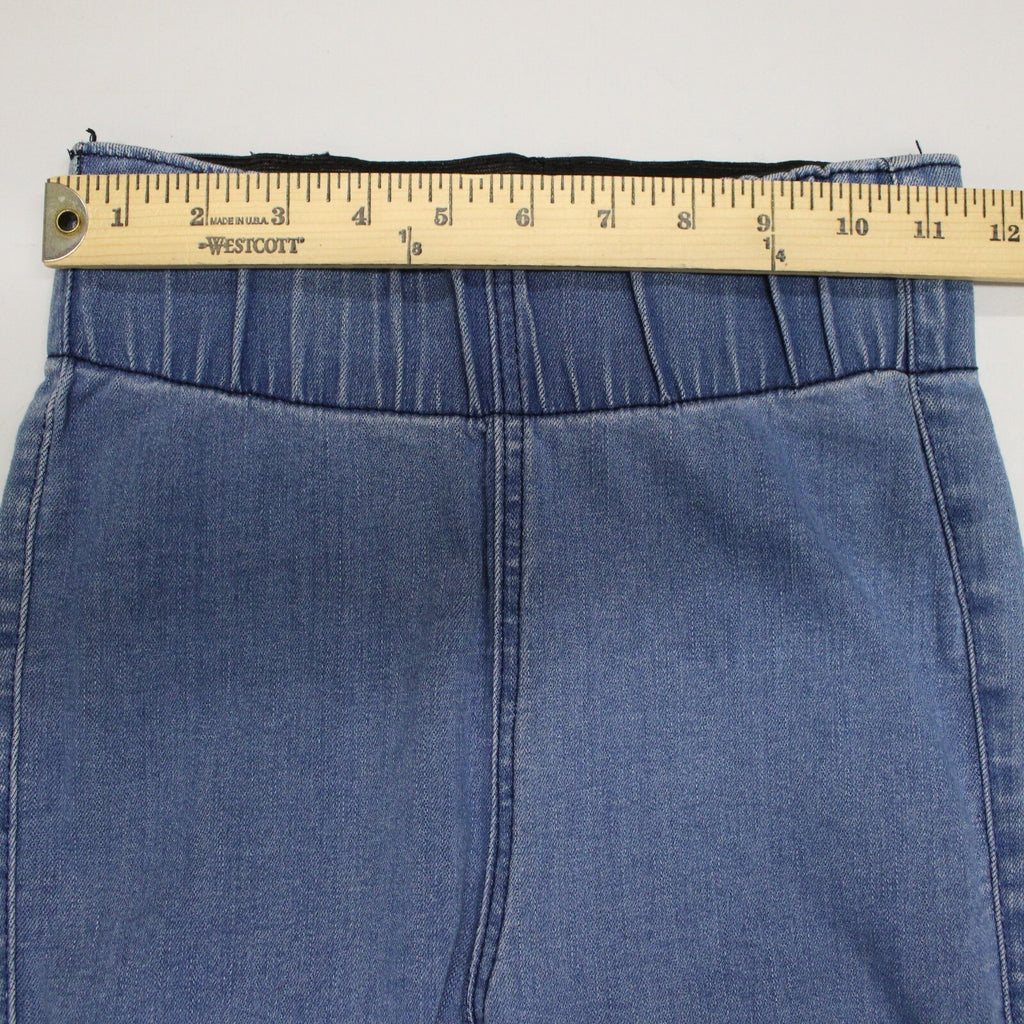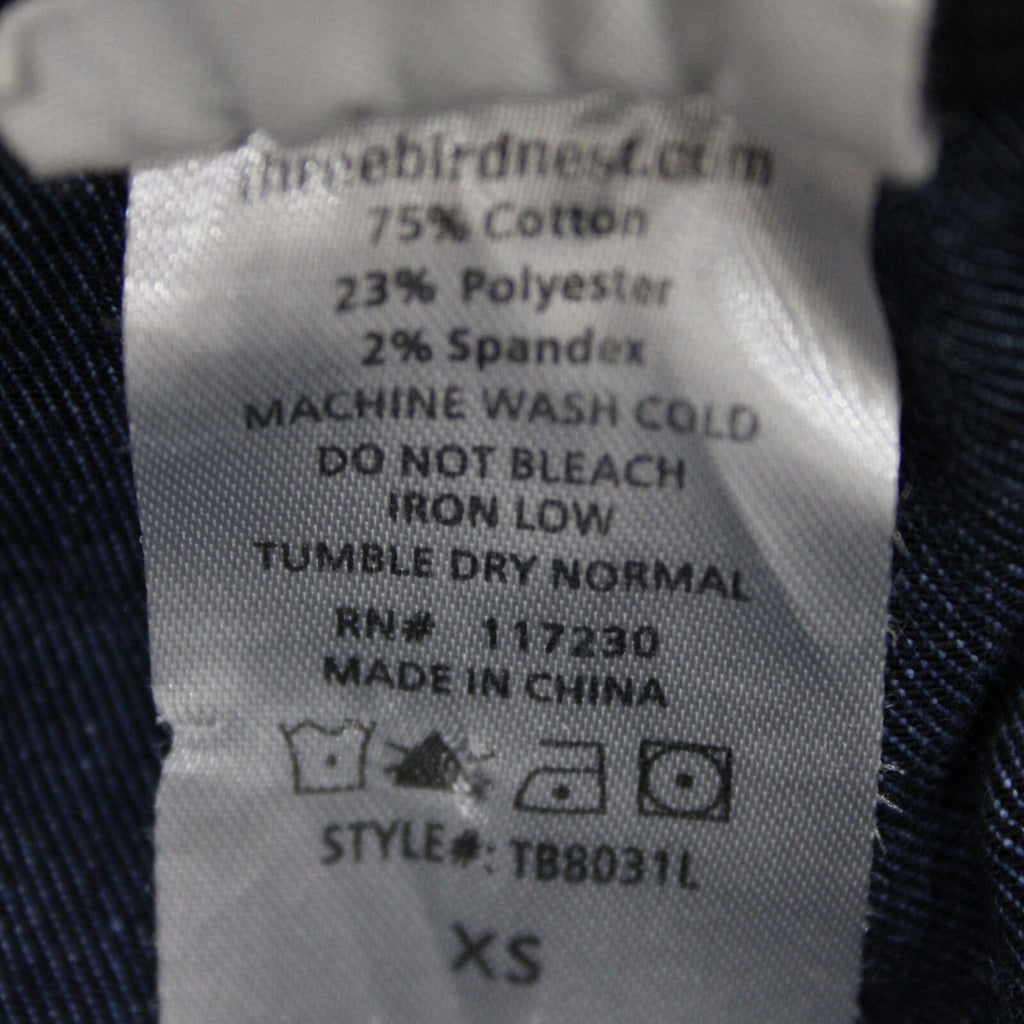 Three Bird Nest Sz XS x 36 Blue Denim Elastic Flare Raw Edge Cotton Poly Jeans