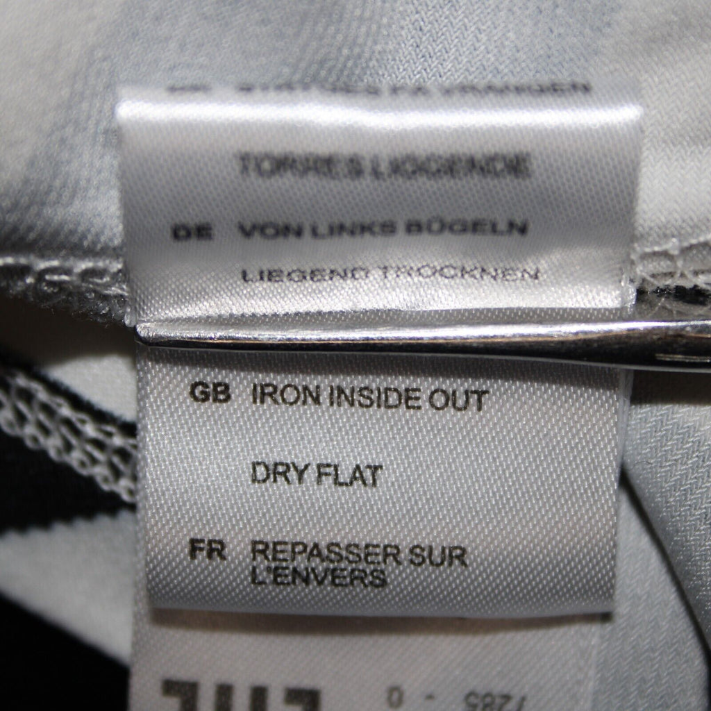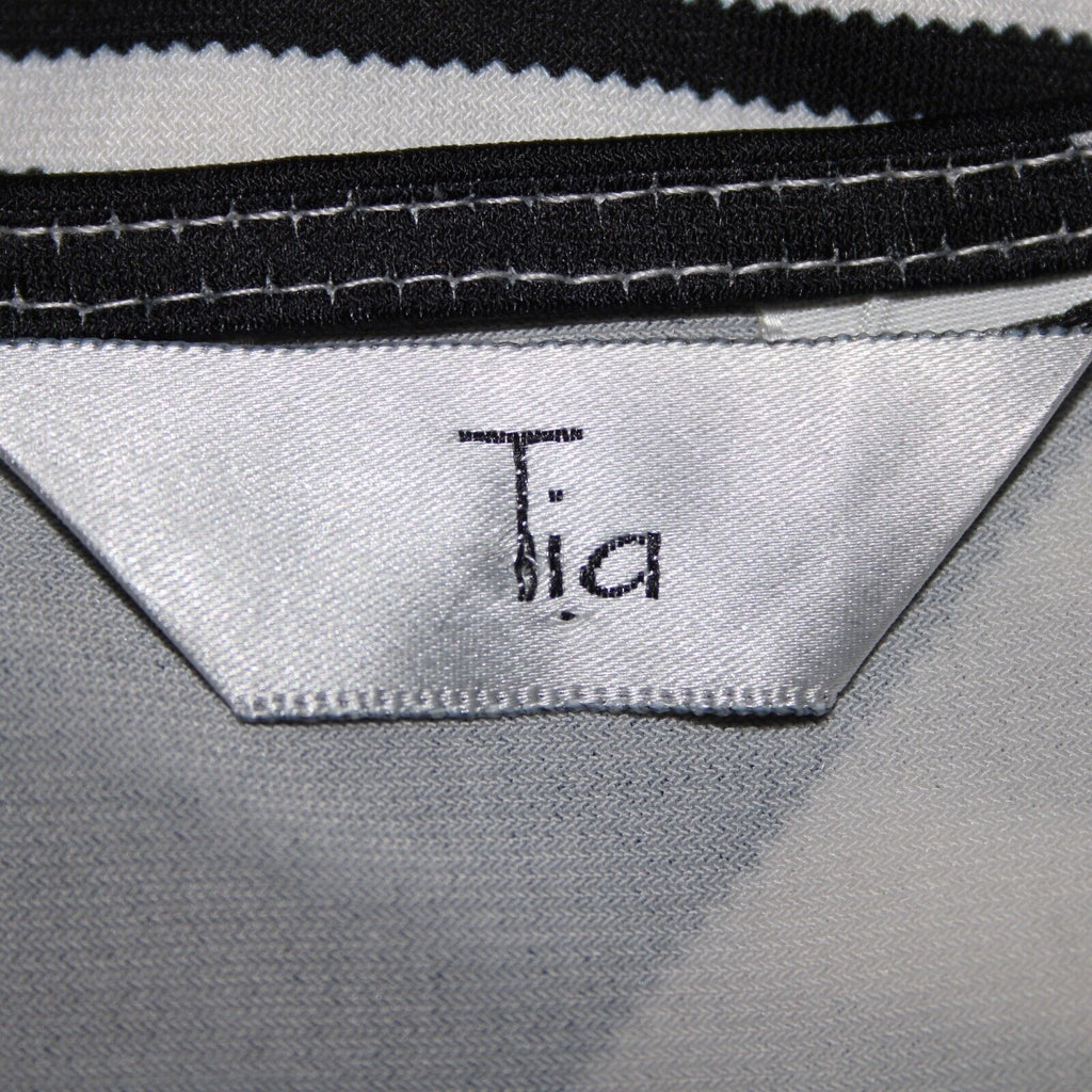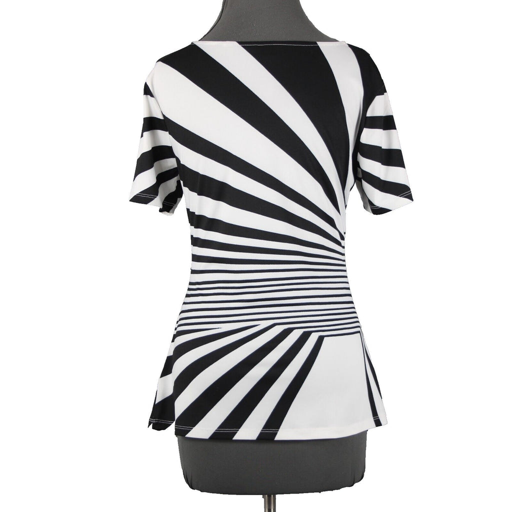 Tia Sz 8 White Black Abstract Pleated Short Sleeve Round Neck Poly Elasthan Top