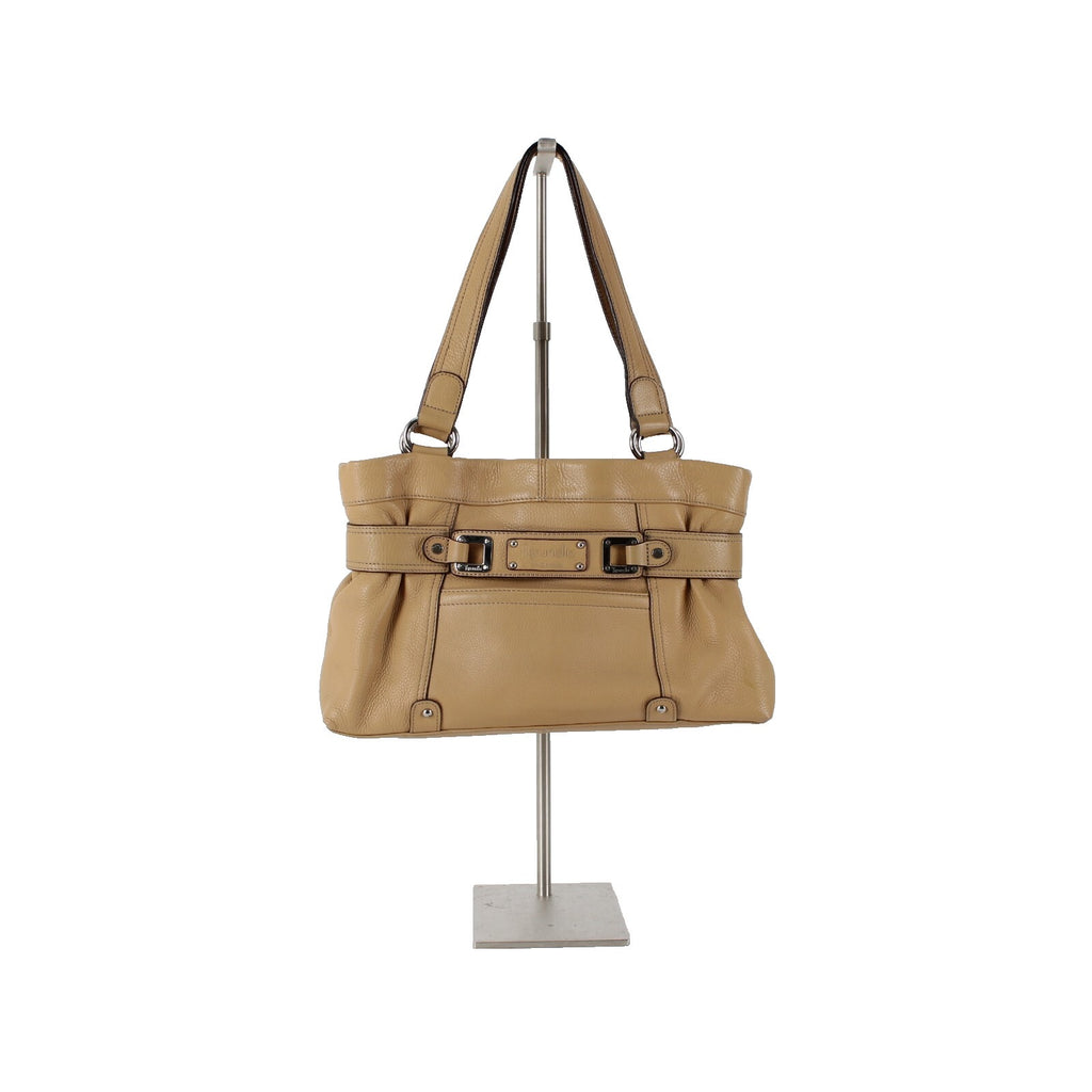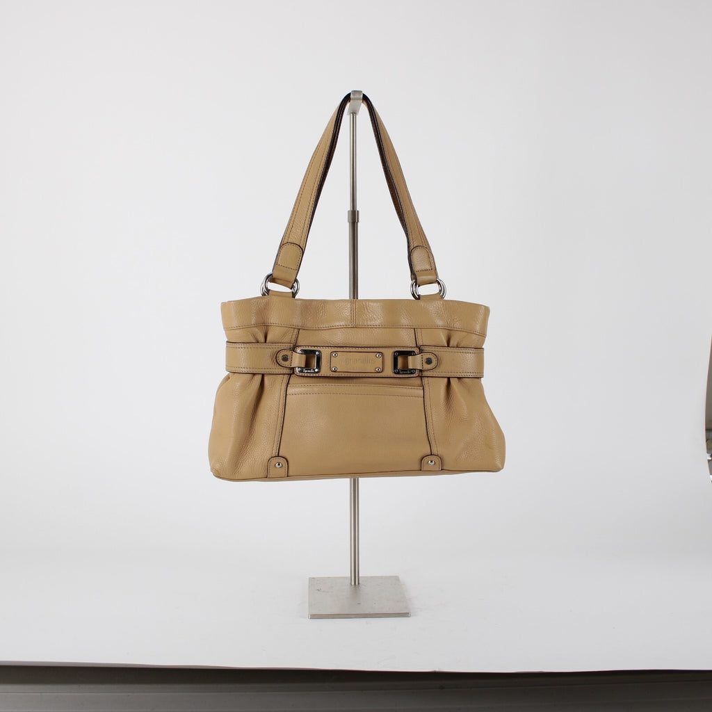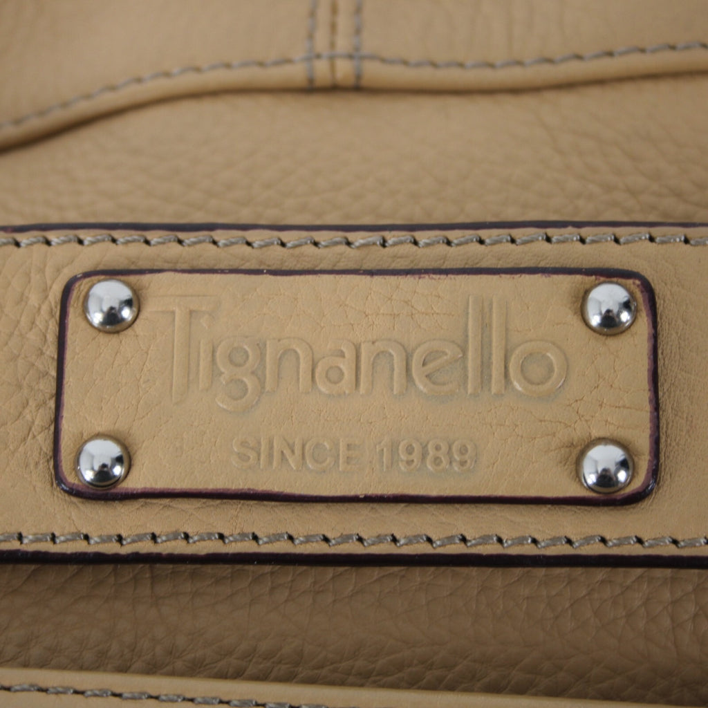 Tignanello 14 x 9 x 3 Tan Silver Hardware Double Handles Leather PVC Poly Purse