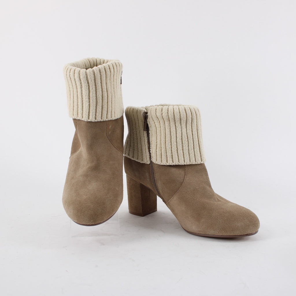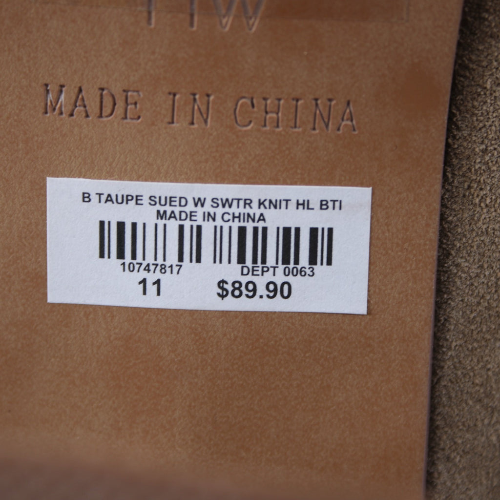 Torrid Sz 11 Wide NEW $89 Tan Suede Cream Knit Cuff Rubber Sole 3" Heel Bootie