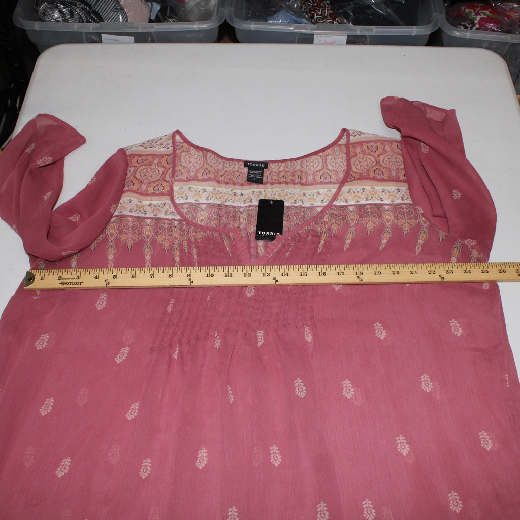 Torrid Top NEW Sz 2X Pink Tan Multi Color Sheer 100% Polyester Top