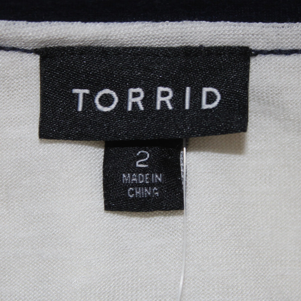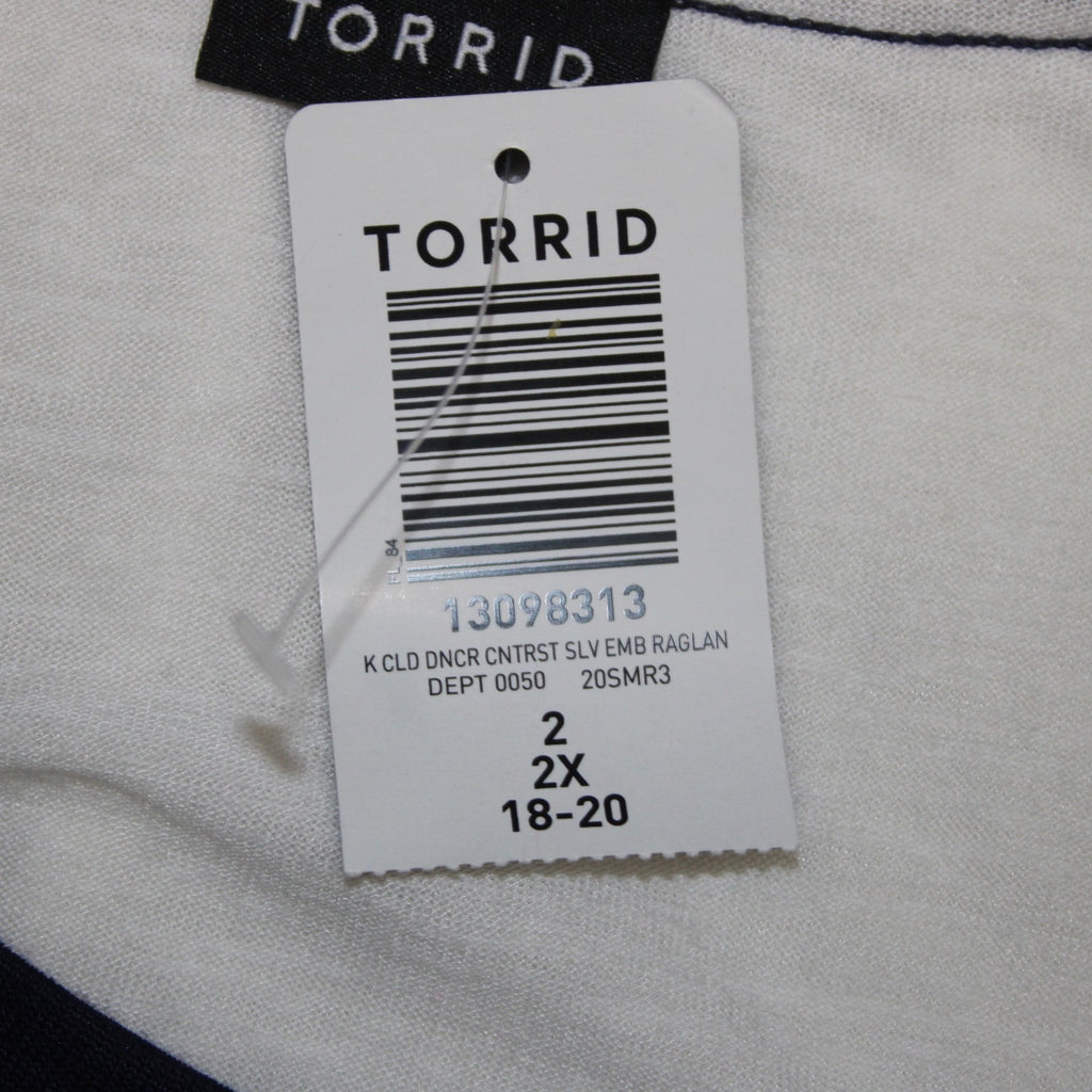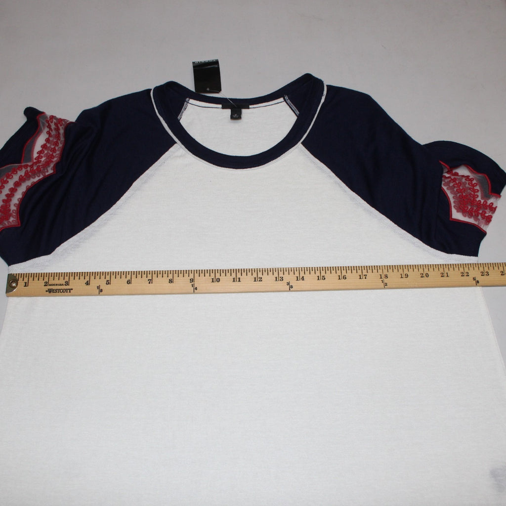 Torrid Top NEW Sz 2X White Navy Red Embroidered Short Sleeve Rayon Poly Top