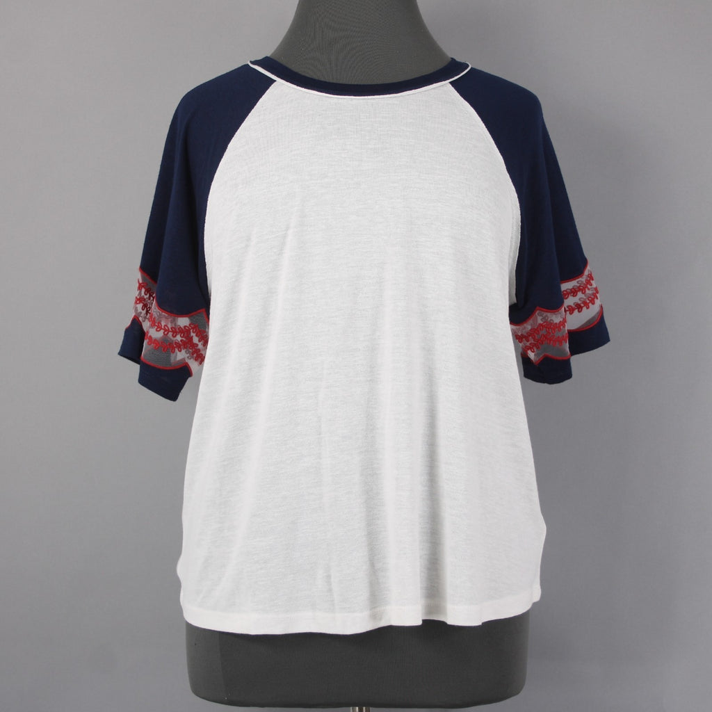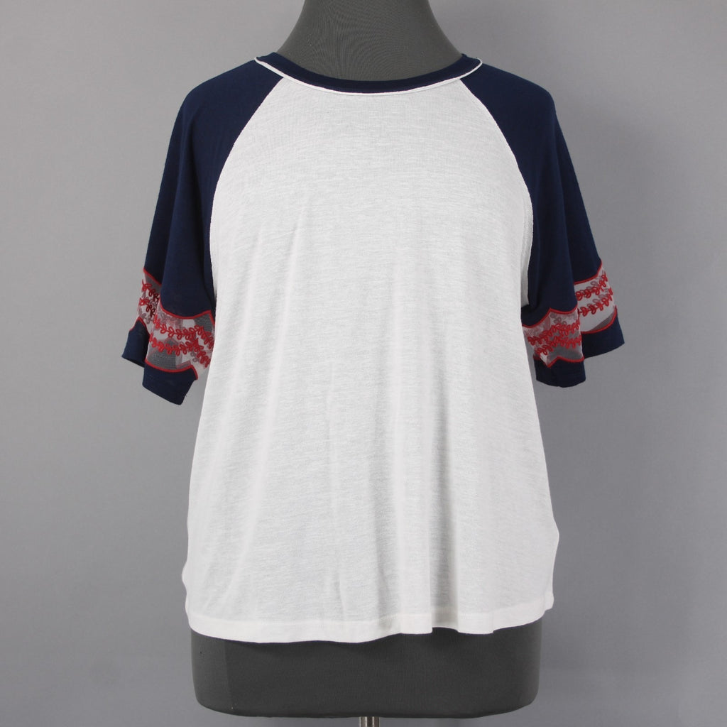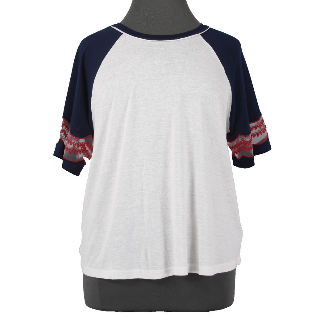 Torrid Top NEW Sz 2X White Navy Red Embroidered Short Sleeve Rayon Poly Top