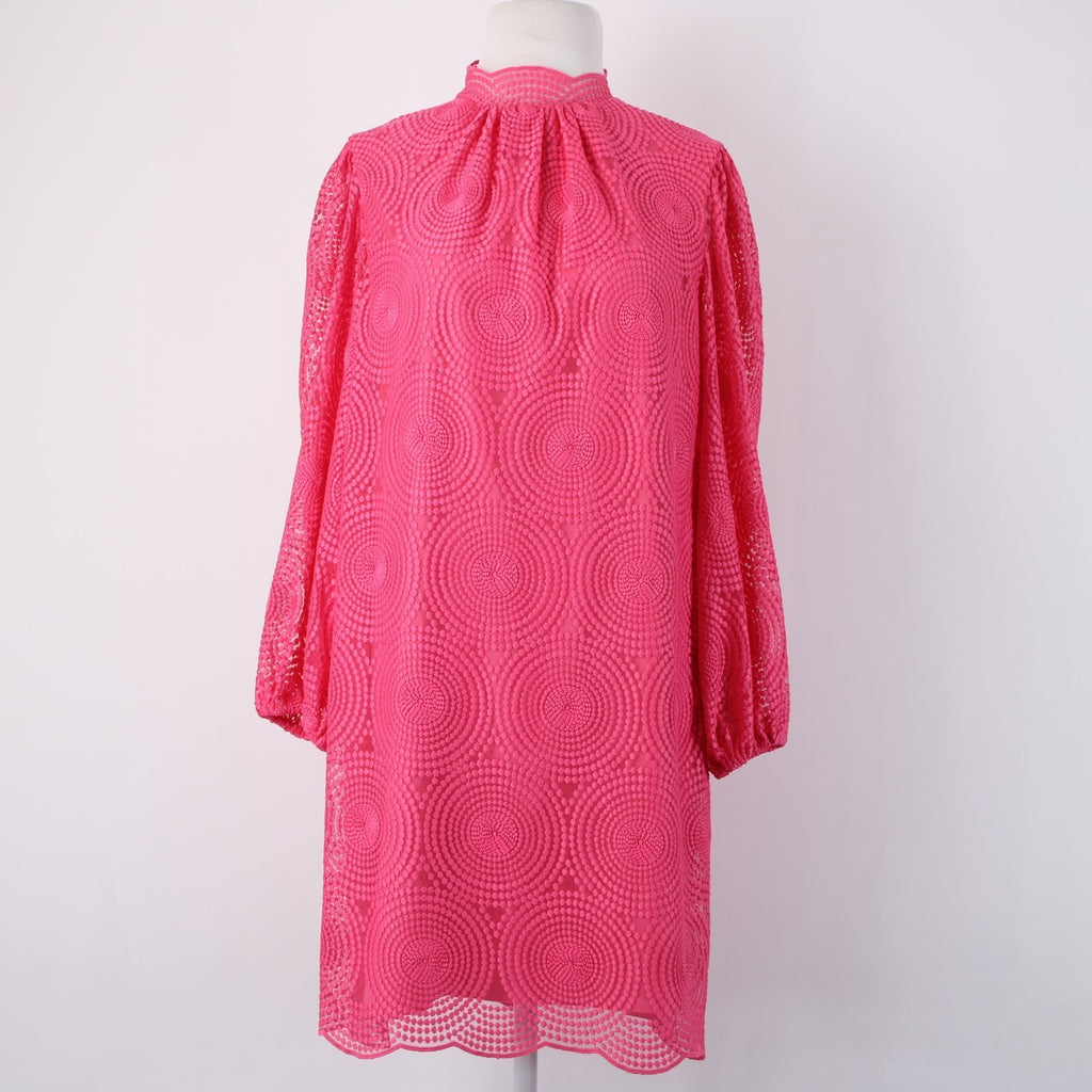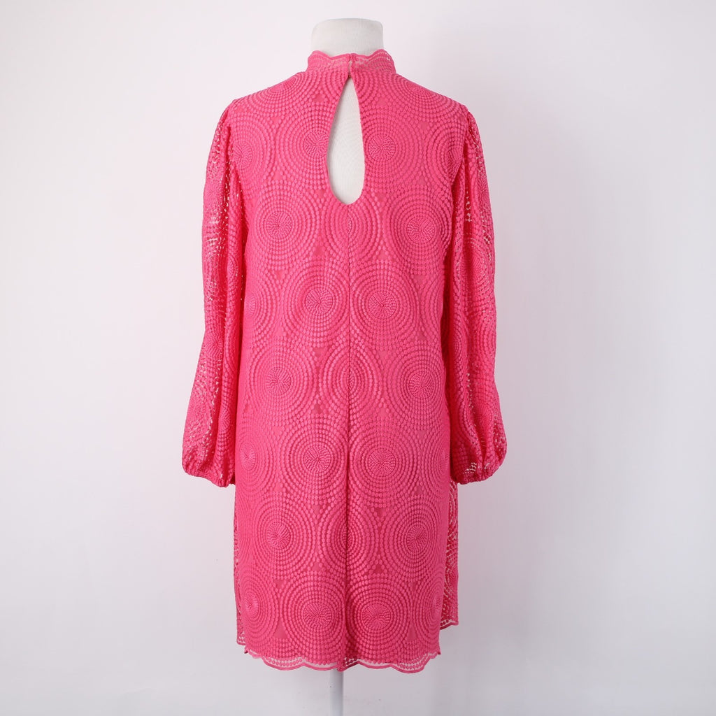Trina Turk Dress Sz 6 Pink Collared Embroidered Lined Polyester Spandex Dress