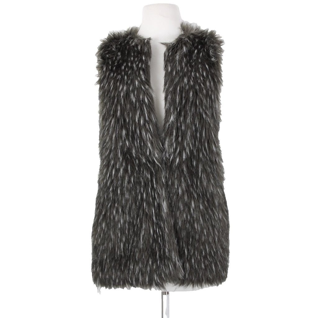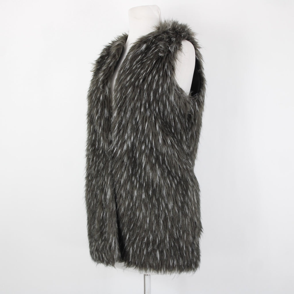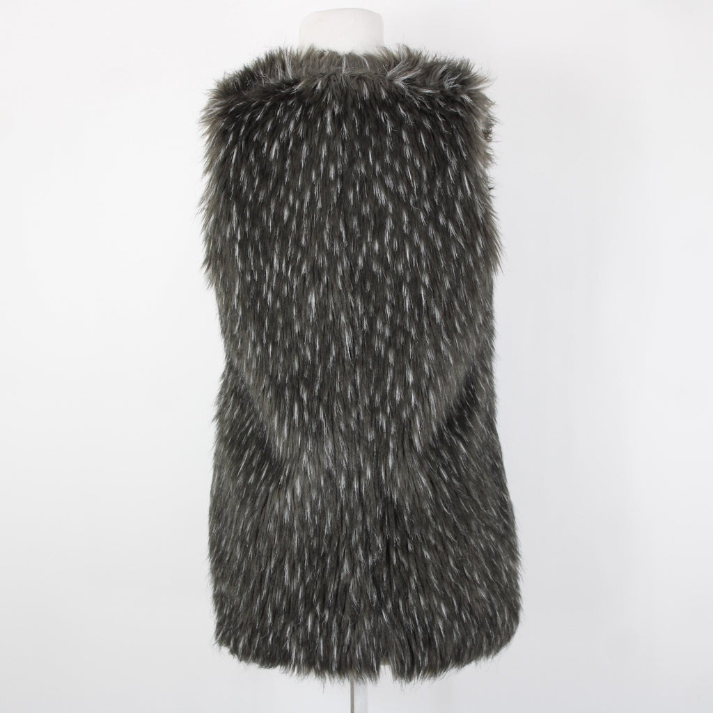 Trouve Sz XS Gray Black Faux Fur Sleeveless Lined Acrylic Polyester Vest