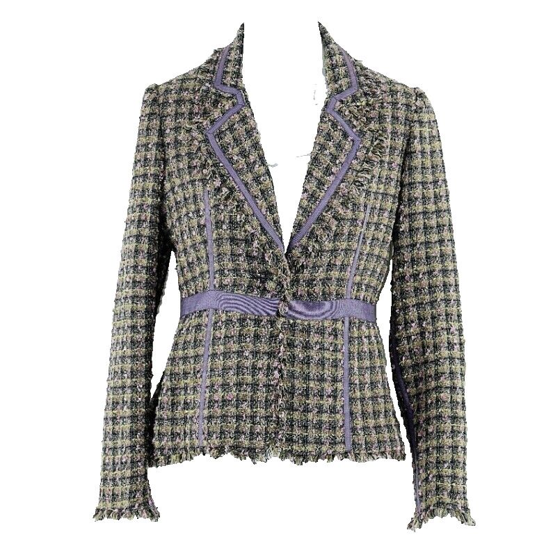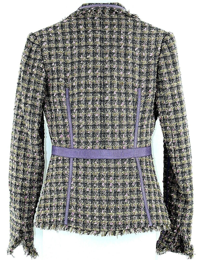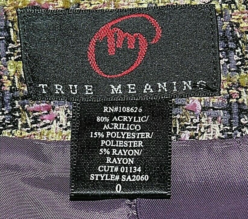 True Meaning Sz 0 Green Purple Plaid Tweed Acrylic Polyester Rayon Jacket