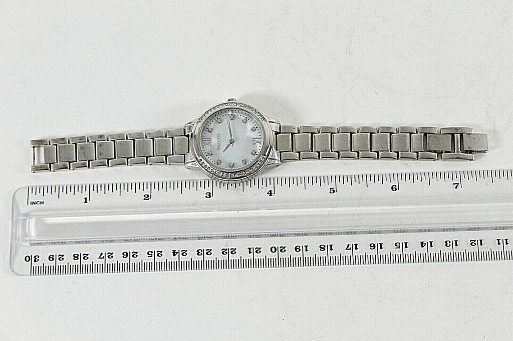 Valletta Sz To 7 Silvertone Rhinestone Detail Mother of Pearl Wrist Watch