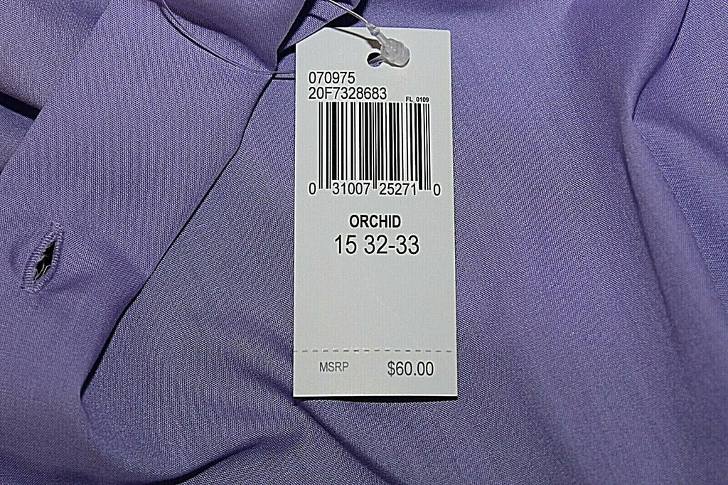 Van Heusen NEW $60 Sz M 15 32 33 R Orchid Lavender Cotton Bld Poplin Shirt