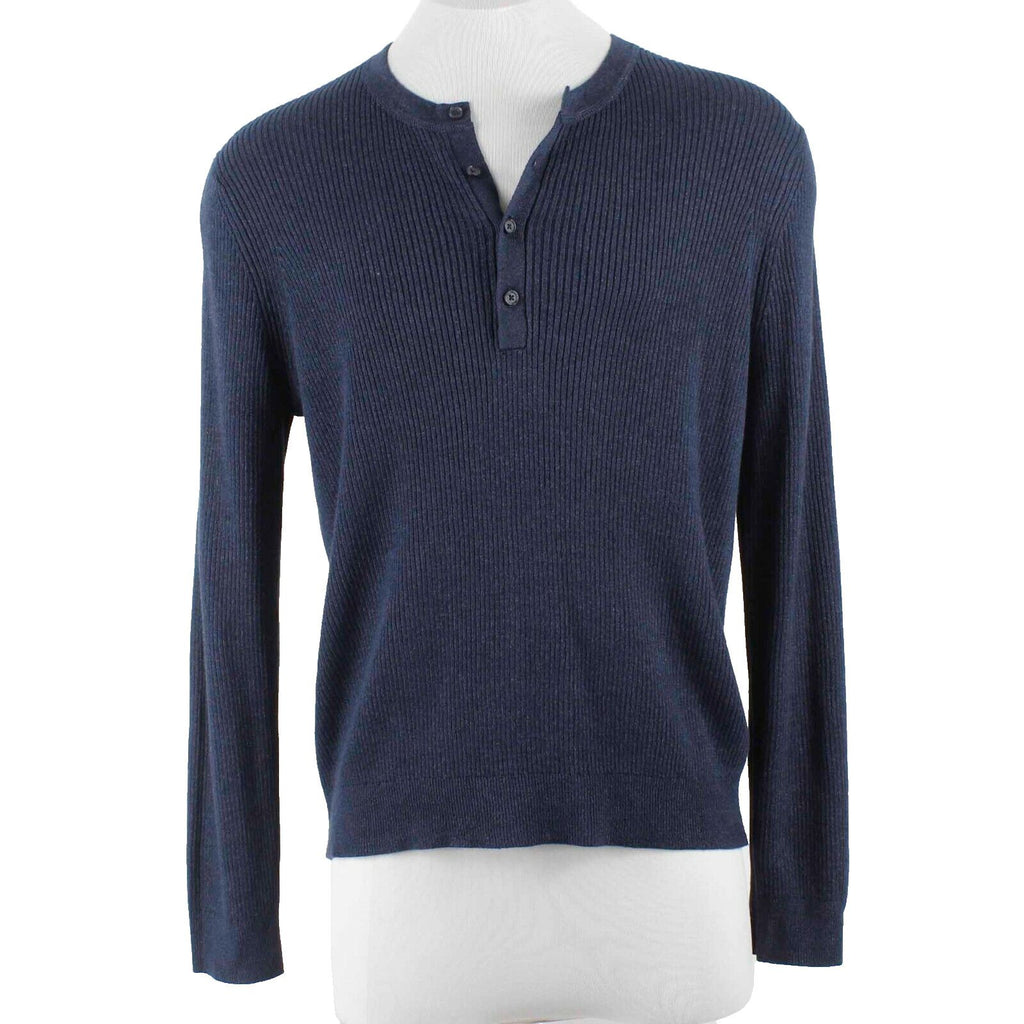Vince NEW $245 Sz XL Navy Blue Ribbed 1/4 Button Linen Blend Men's Sweater