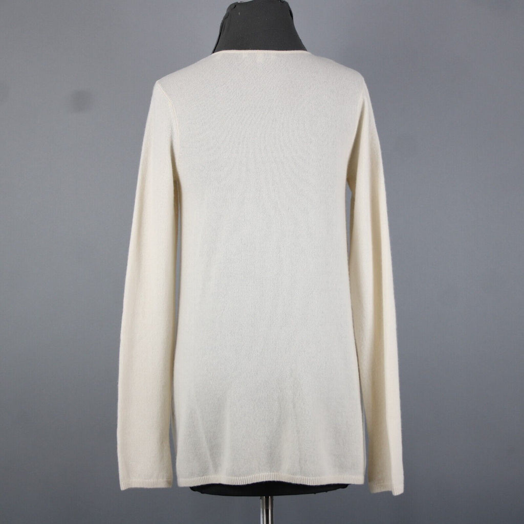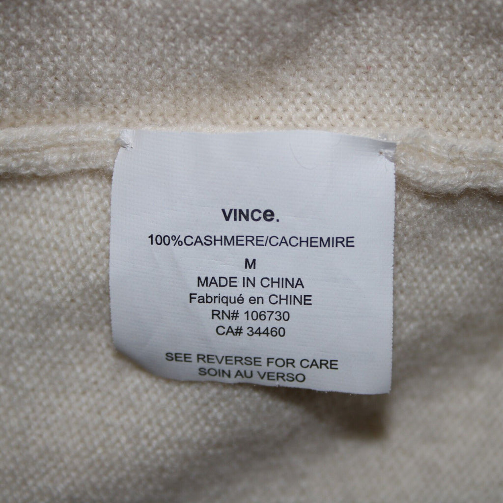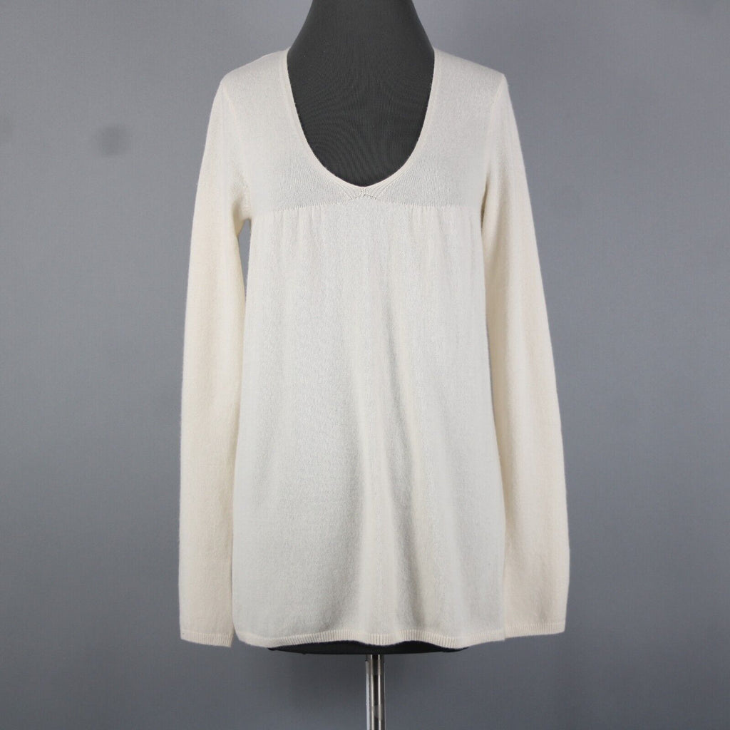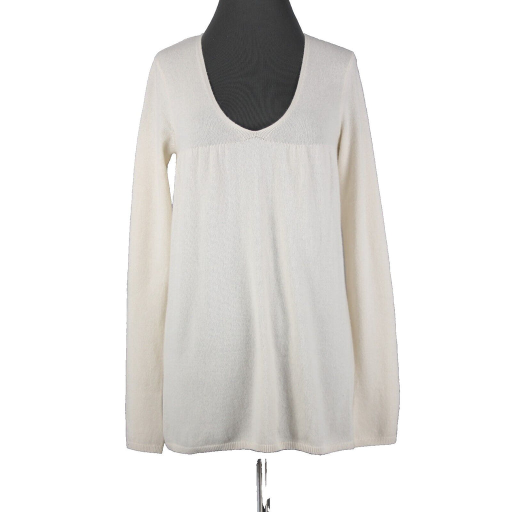 Vince Sz M Ivory Cream Pleated Round Neck Long Sleeve 100% Cashmere Sweater