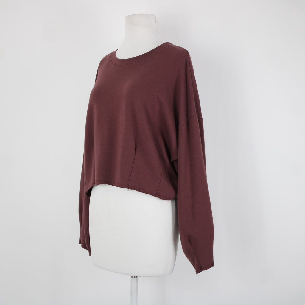 Wasabi Mint Sz M Burgundy Purple Crop Long Sleeve Polyester Cotton Top