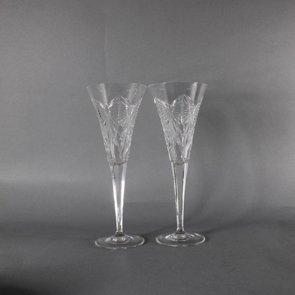 Waterford Champagne Glasses Set Of 2 Clear Cut Crystal 9" Champagne Glasses