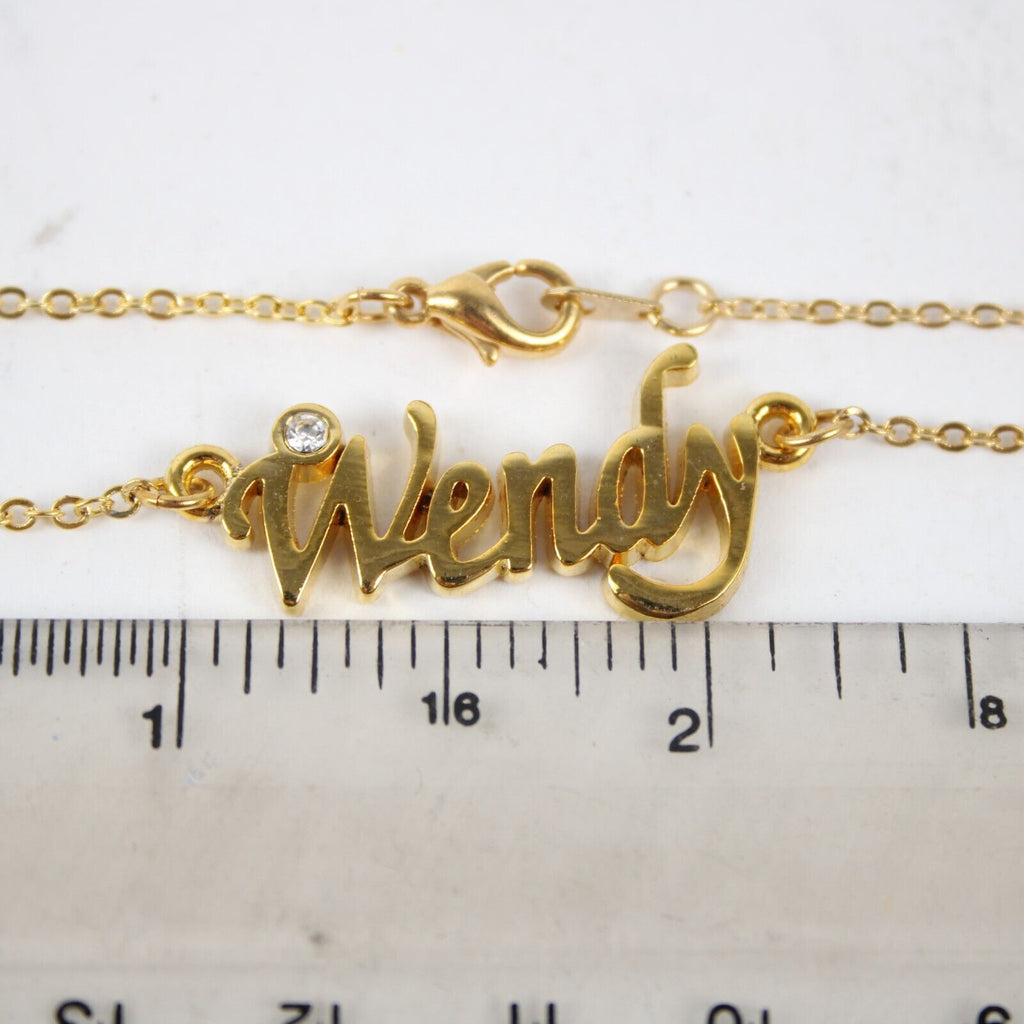 WENDY NEW Name Goldtone Rhinestone Accent 14.5" W 4.5" Multi Ring Ext Necklace