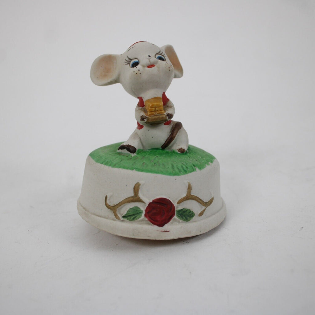 Whimsical Mouse Multi Color Pottery 4.5" Musical Box Figurine