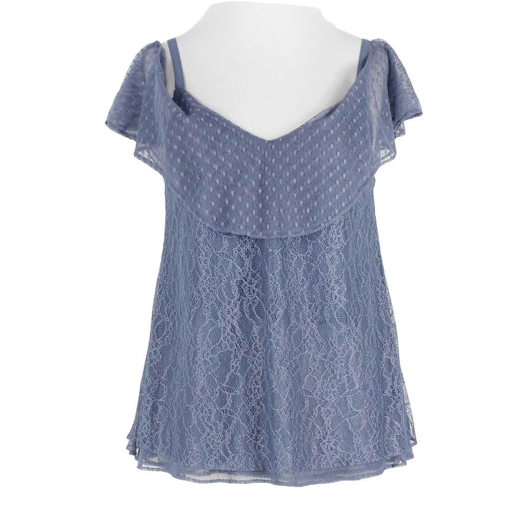 White House Black Market NEW $110 Sz S Blue Lined Lace Nylon Poly Top