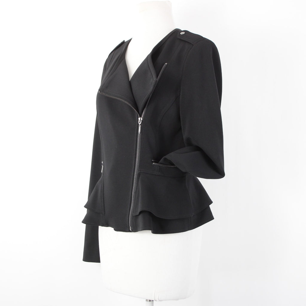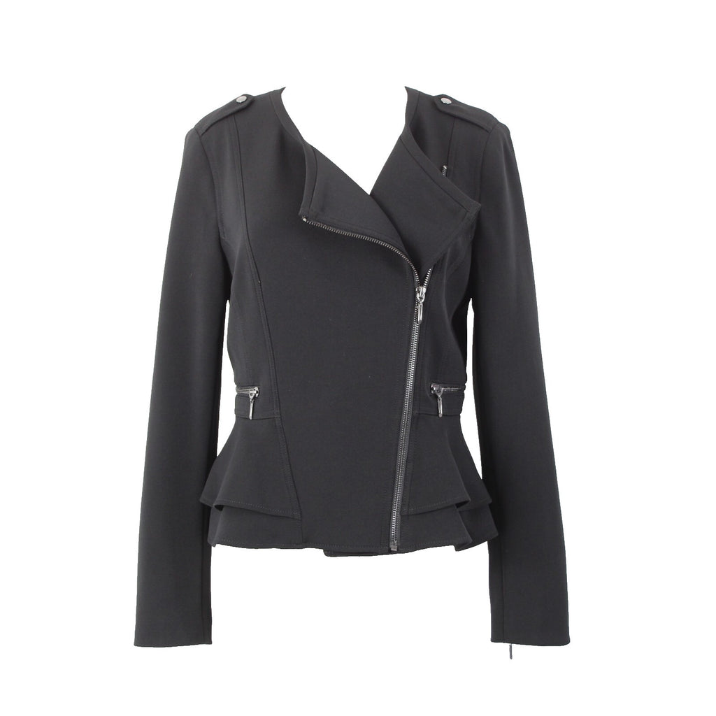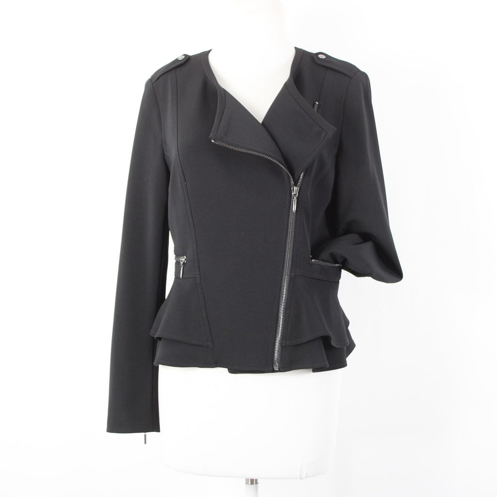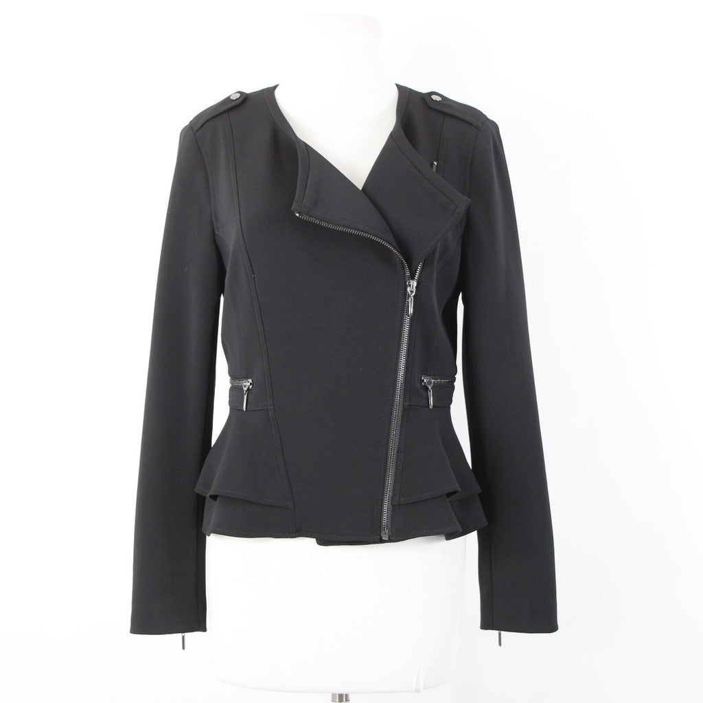 White House Black Market NEW $140 Sz 6 Black Zipper Pkt Poly Spandex Moto Jacket