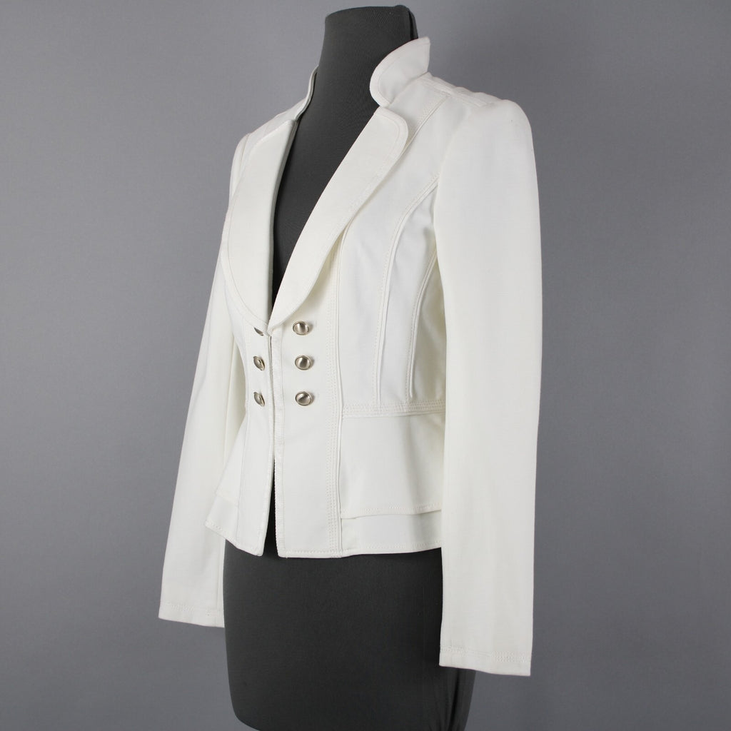 White House Black Market NEW $148 Sz 4 White Silver Collared Viscose Jacket
