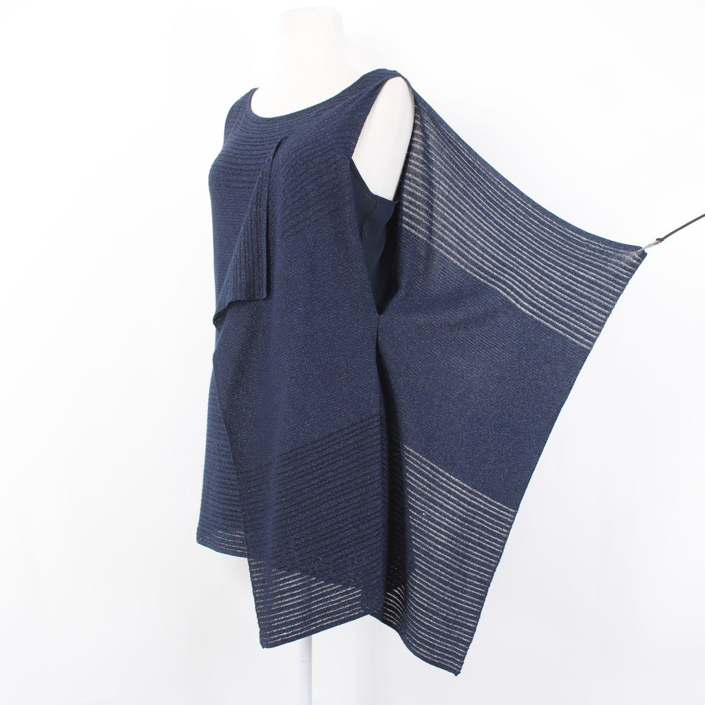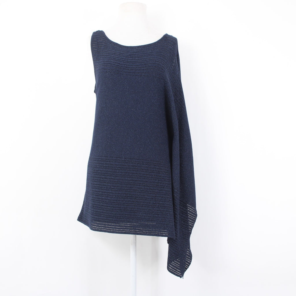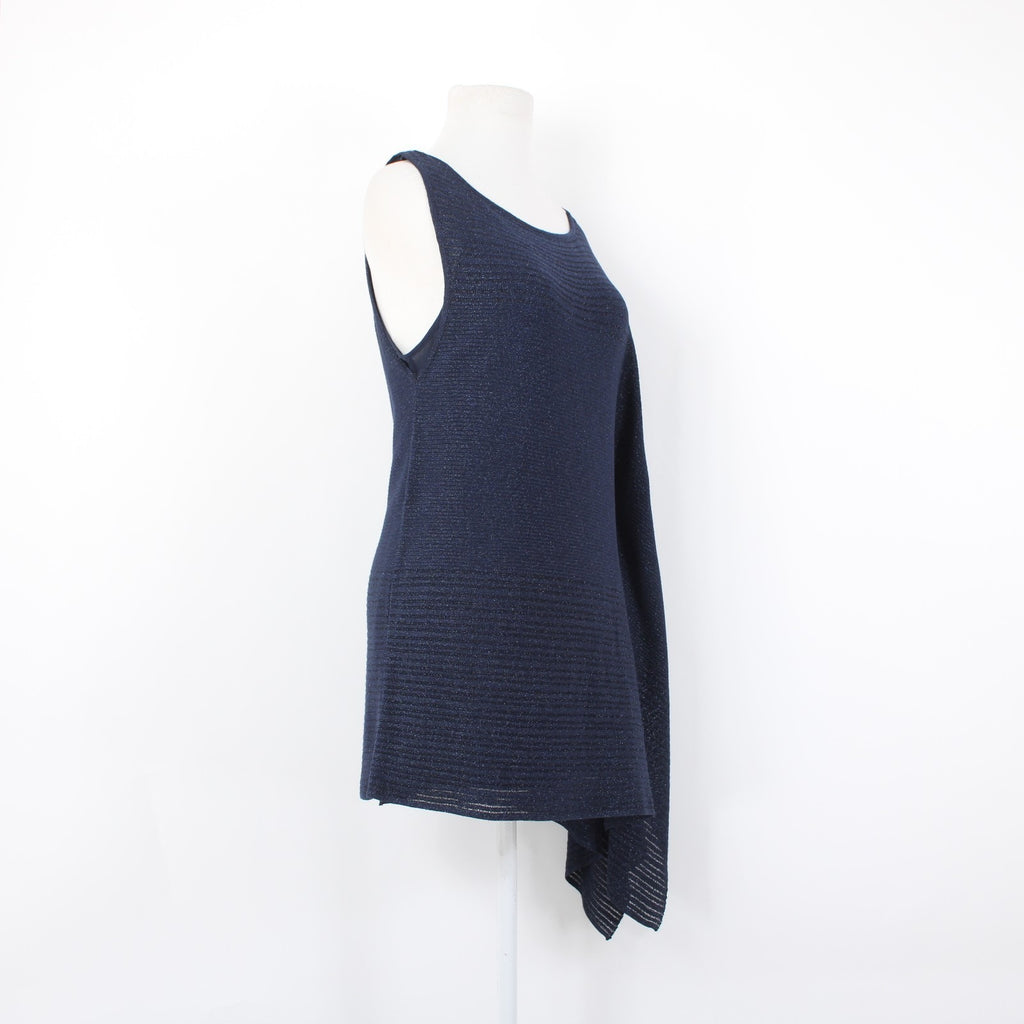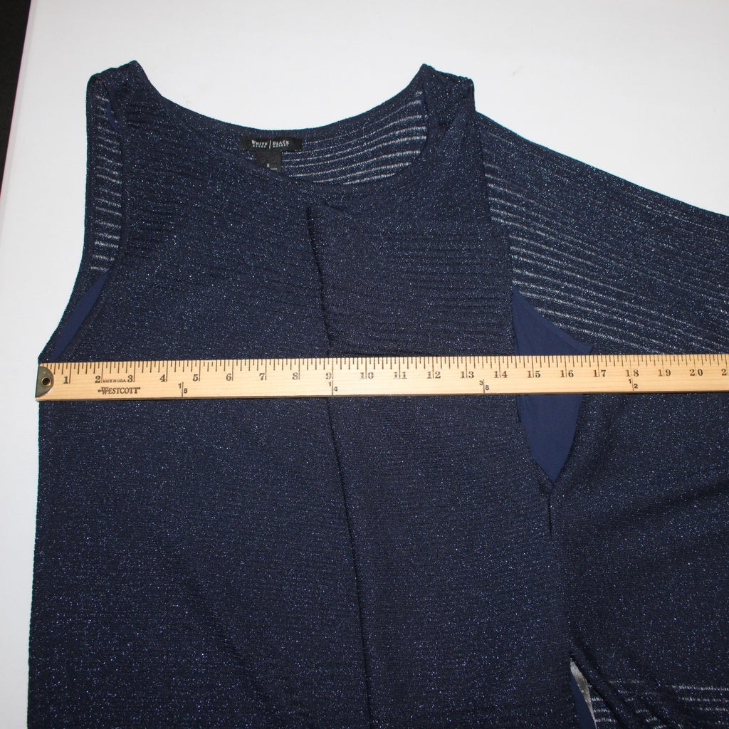 White House Black Market Top Sz S Navy Blue Metallic Draped Lined Rayon Top