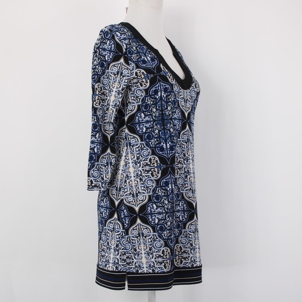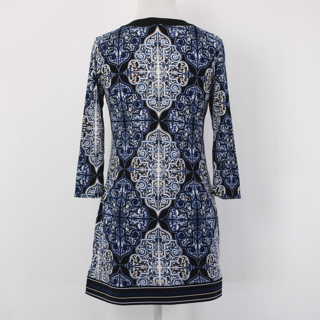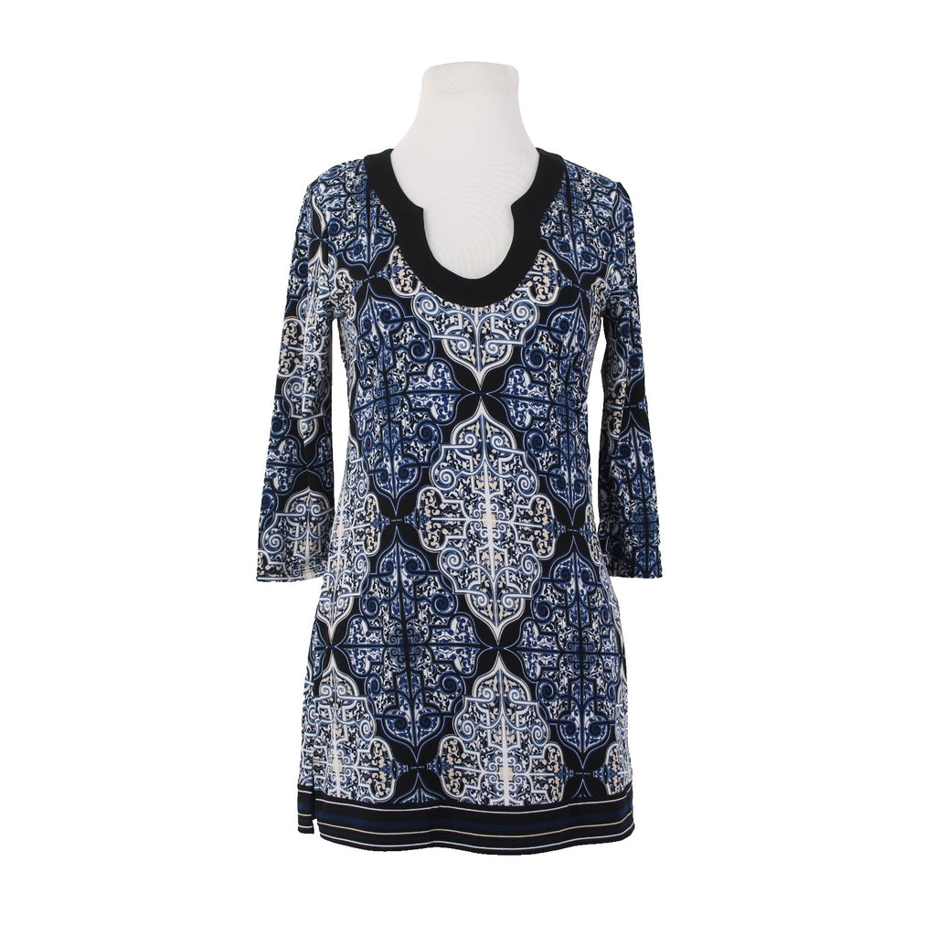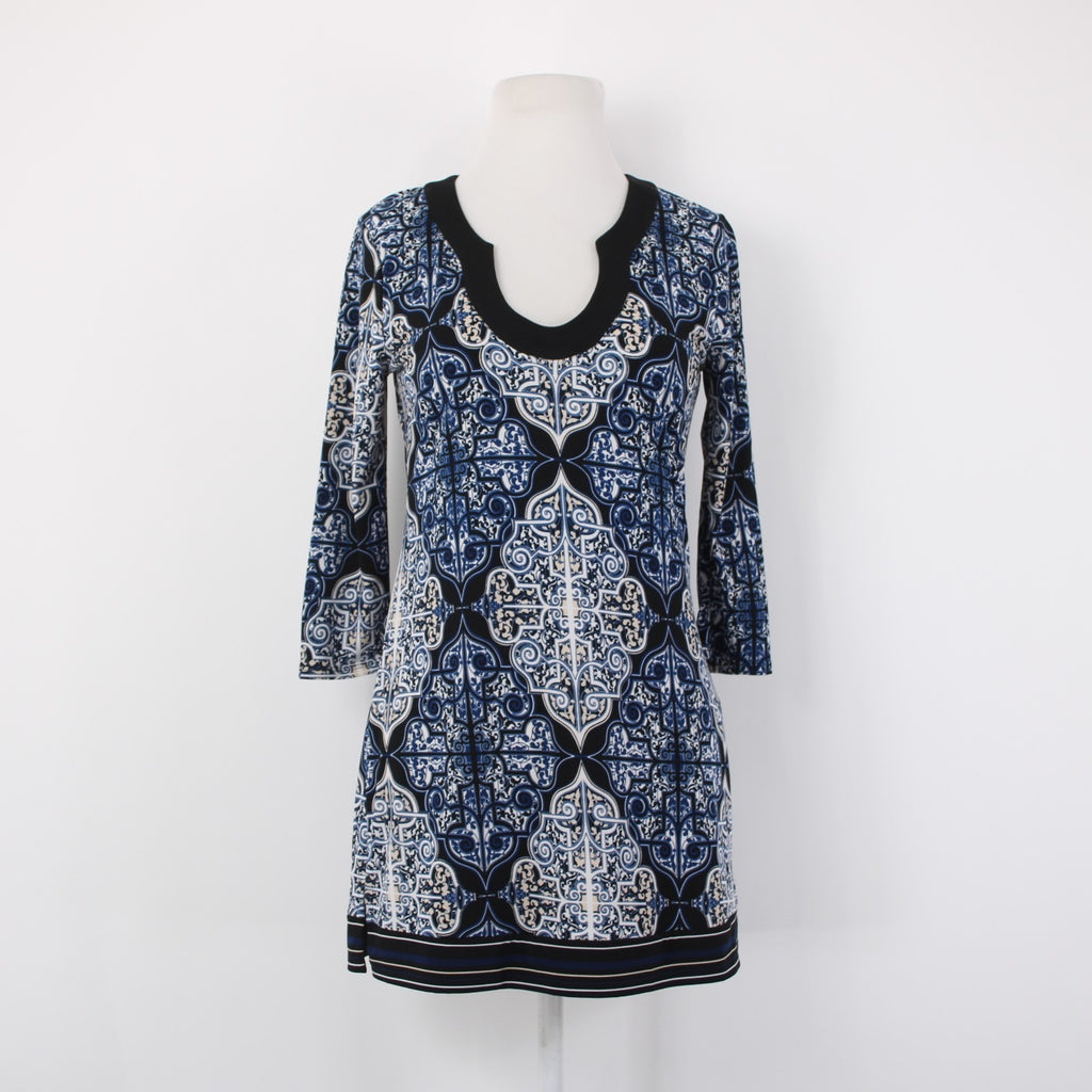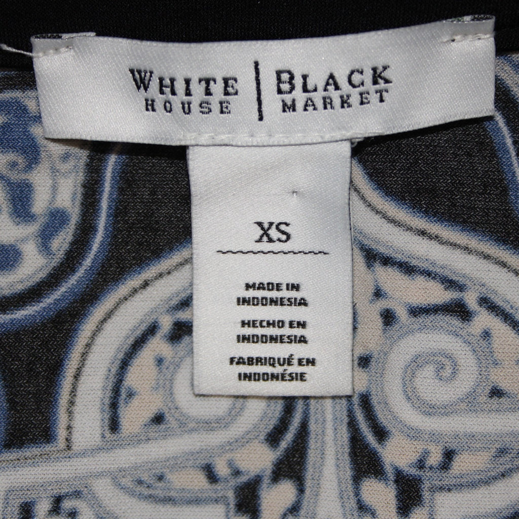 White House Black Market Top Sz XS Navy Blue Black White Tunic Poly Spandex Top