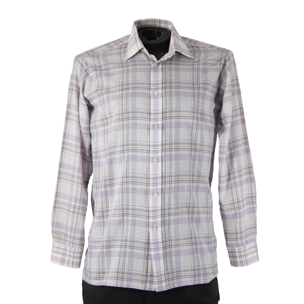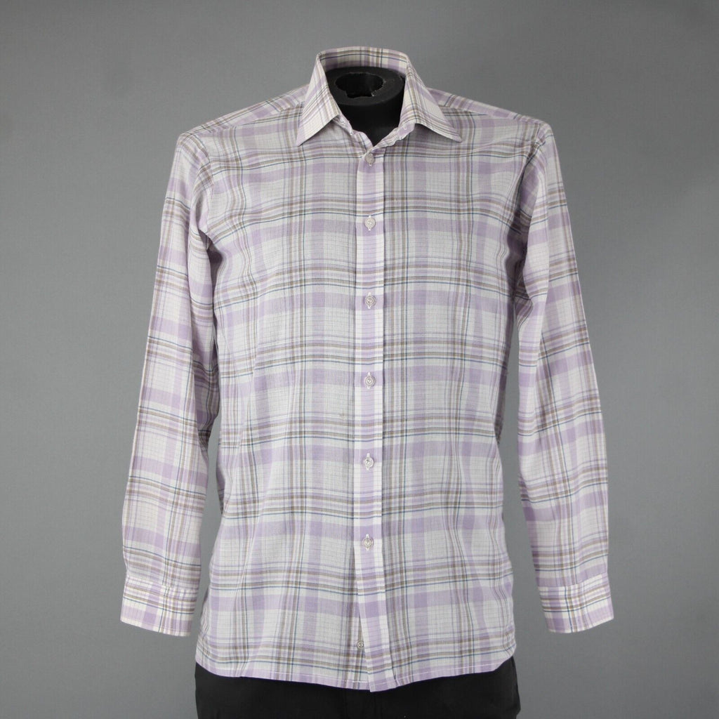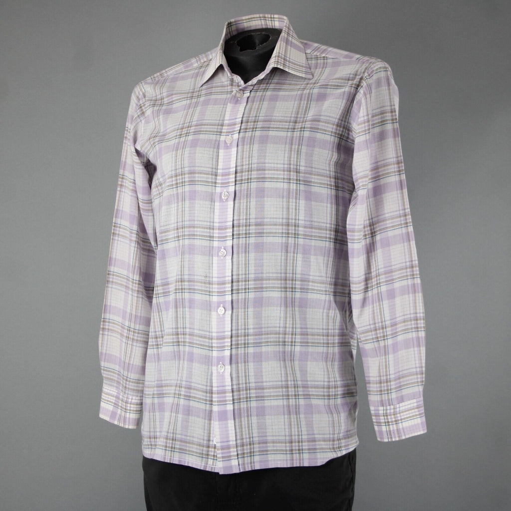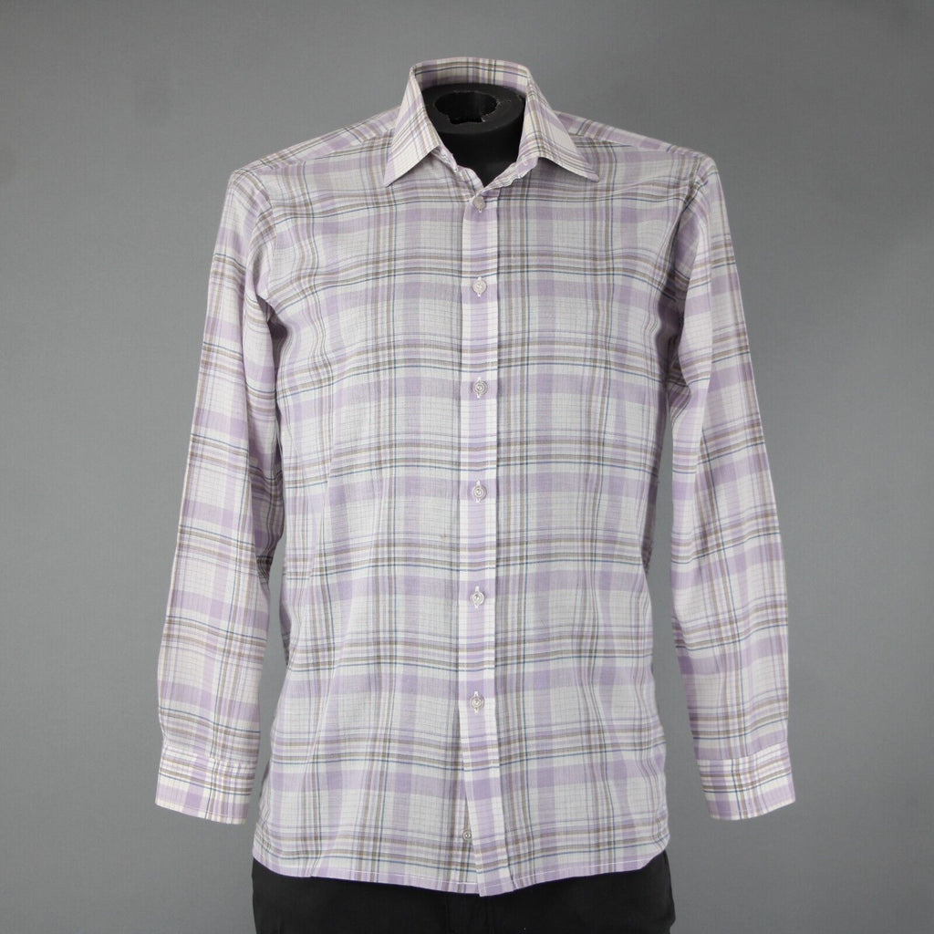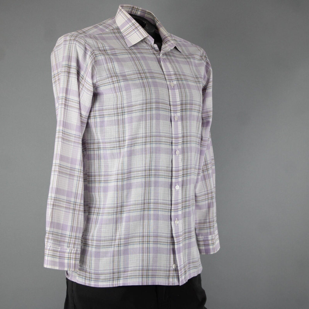 Wilkes Bashford A252 Stuart Sz No Size M? Lavender White Brown Cotton Poly Shirt