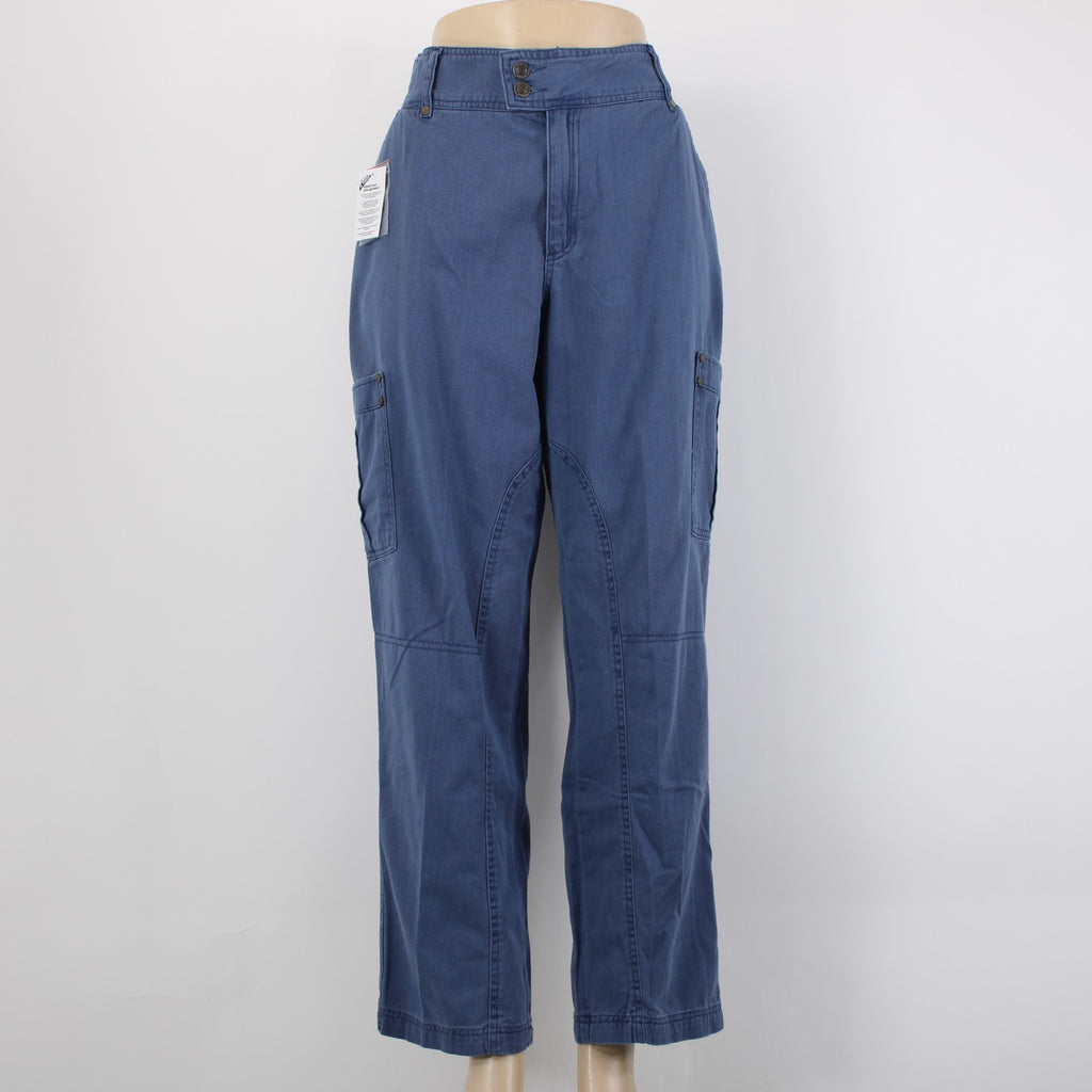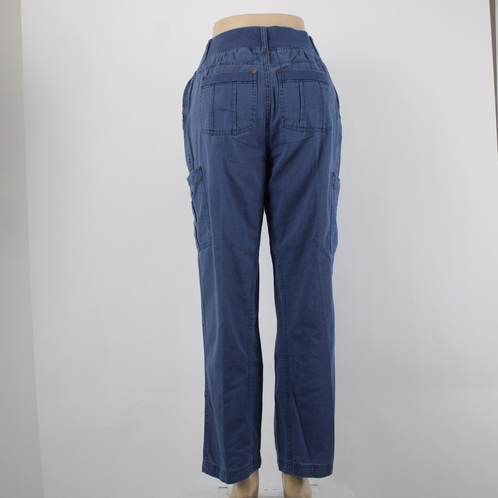 Woman Within NEW Sz 12W Blue Cargo Patch Pockets Elastic Waist 100% Cotton Pants