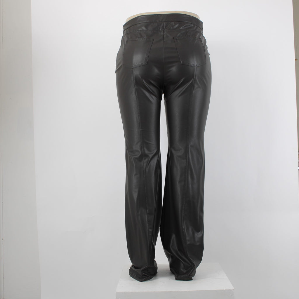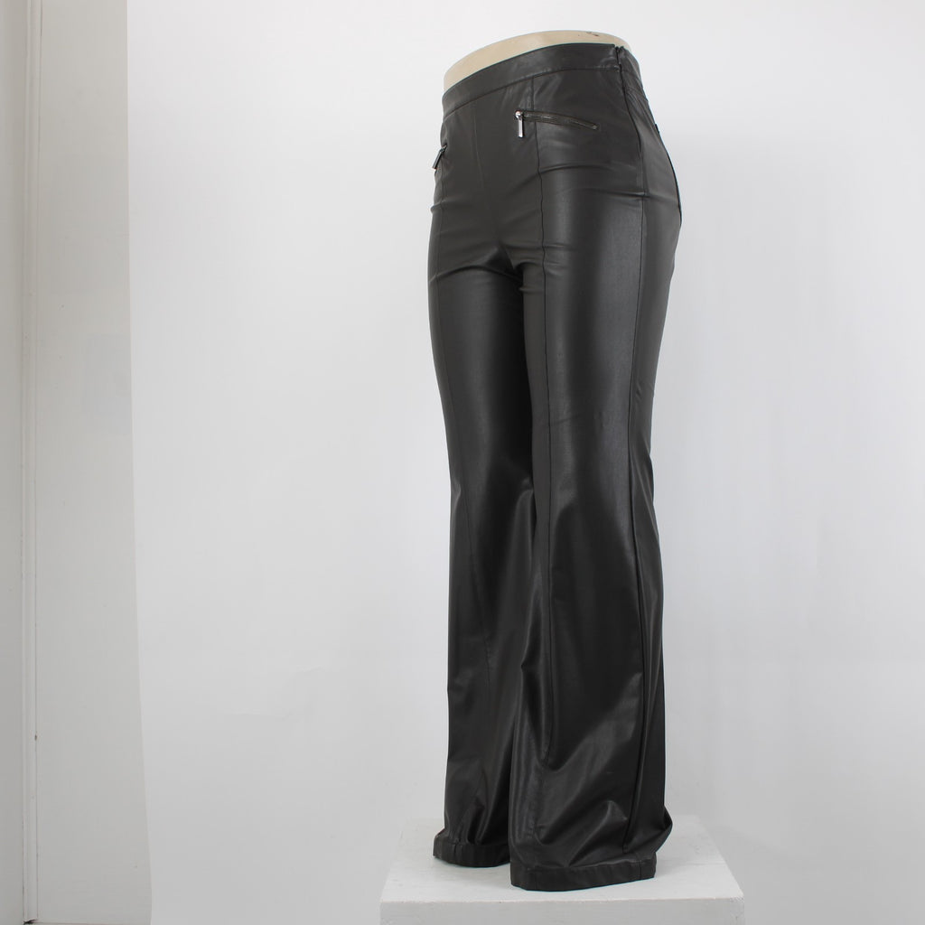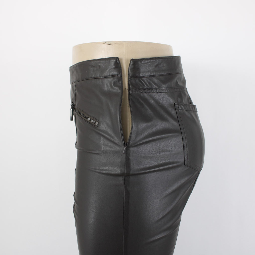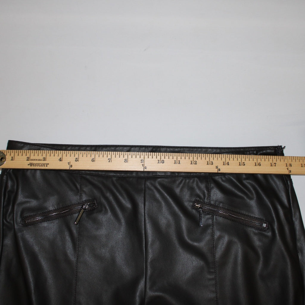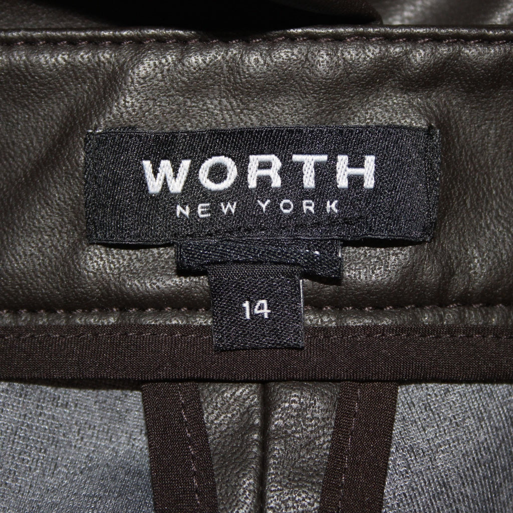 Worth Sz 14 Dark Brown Side Zipper Faux Leather Polyurethane Nylon 5 Pocket Pant