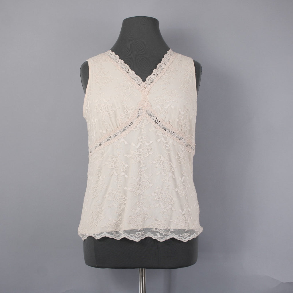 Worthington Top NEW $34 Sz 2X Tan Lace Lined V Neck Nylon Polyester Top
